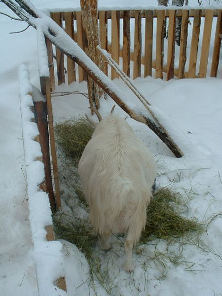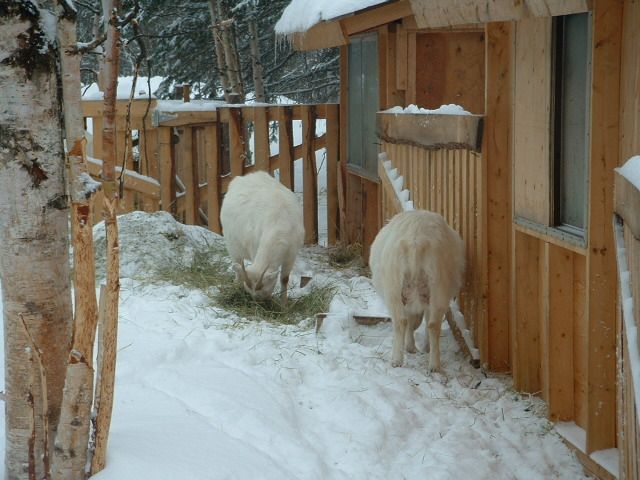 Bilder zu machen ist mehr oder weniger muessig, es gibt halt immer nur Schnee, in wechselnden Formationen, aber das isses halt. Wir warten auf den Ziegennachwuchs.