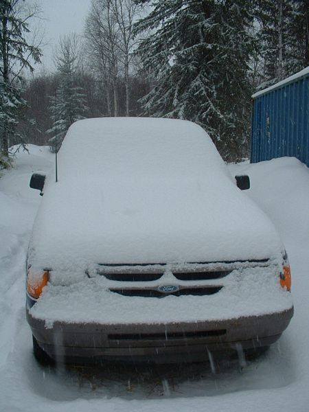 Den meisten von euch hatte ich ja schon einzeln ausfuehrlich vorgejammert, was das Forstamt uns fuer ein Vergnuegen bereitet. Doch fuer die Nichtwisser und dennoch Interessierten hier eine kleine Zusammenfassung: Wir beantragten eine Holzeinschlagserlaubnis – dachten wir. Sagt die Foersterin am Telefon, dass sie rauskommen muss, sich das angucken, damit wir auch die richtige Erlaubnis kriegen. Klang noch gut. Termin wurde jedoch leider zweimal um jeweils eine Woche verschoben. Waren wir schon nicht mehr so froehlich. Beim dritten Termin tauchte sie nicht auf. Also rief ich an. War sie krank gewesen und aus irgendeinem Grunde (kanadisch???) konnte niemand Termine absagen. Schade eigentlich. Dann muesse das eben naechstes Jahr gemacht werden, jetzt sei es ja schon fast zu spaet! Ich war sauer, sagte ihr, dass das fuer uns bedeute, dass wir kein Haus bauen koennten dieses Jahr. Tja. 2 Stunden spaeter oder so rief sie an, habe was umstellen koennen, komme am naechsten Tag. Ich war froh. Am naechsten Tag kamen zwei junge Frauen mit einem dicken Forst-Pickup-Truck, komplett mit dicker Winde vornedran und tollsten Reifen (wichtig zu wissen fuer den Fortgang der Geschichte). Wir stapften in den Wald, sie guckte den ersten Baum an, sagte, das sei ja kein Problem (was uns eigentlich klar war), sagte dann, Gereon muesse den Schlagabraum verbrennen, und die Permits kosteten pro Stueck (wir wollten eines pro Person) inzwischen leider 1000 Dollar Kaution, sie seien so oft missbraucht worden in der Form, dass sie nicht genutzt worden seien.