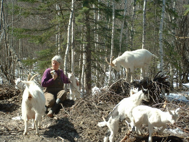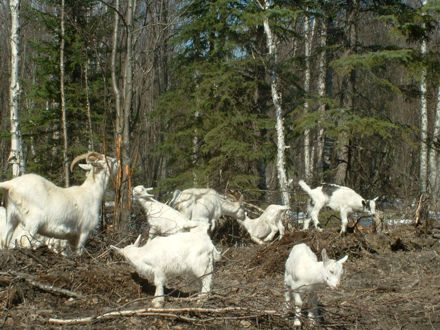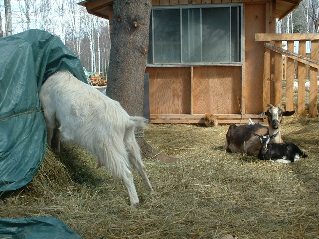 Hier die Bilder ohne weiteren Kommentar, nur mit der Bitte um Bewunderung eines geeigneten albertanischen Wappentieres: Billinger! So sieht man viele Ziegen bei verschiedenen Aktivitaeten, und auch sieht man die Ziegenhirtin im Felde bzw. auf dem neuen Natursteinfussboden in ihrer rustikalen Kueche. Jawoll.