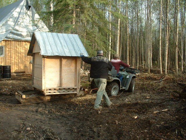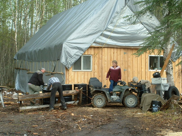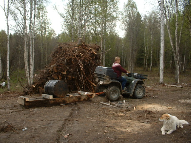 Ja, und dann kamen Chris und David. Schwer beladen. Sie kamen naemlich mit Anhaenger und darauf zwei Quads. Und natuerlich mit Proviant fuer eine ganze Garnison, so kam es mir vor. Und voller Tatendrang (Chris’s staendige Frage: Was wollen wir denn noch tun? Welches Projekt als naechstes?) Himmlisch. Am Samstag fuhr die ganze Truppe mit dem netten Nachbarn nach Debolt und holte alles zurueckgelassene vom kleinen Haeuschen ab. Ich war ja arbeiten, aber ich glaube, alle hatten Spass. Ich nun auch, weil meine Schuessel wieder bei uns wohnt, wenn auch noch nicht aufgestellt. Doch es gibt Hoffnung!