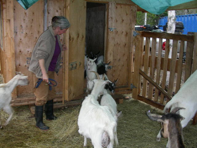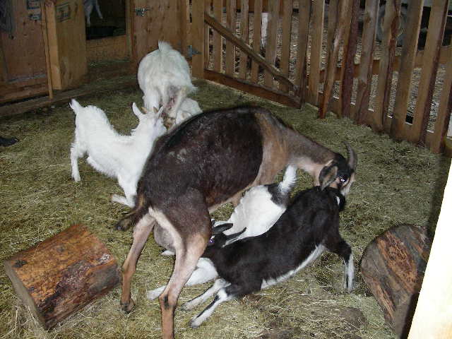 Wenn wir nach einer Nacht im Stall, weil ich morgens melken will, die kleinen Zickis rauslassen, purzeln sie wasserfallartig aus der Tuer, und man muss feste stehen