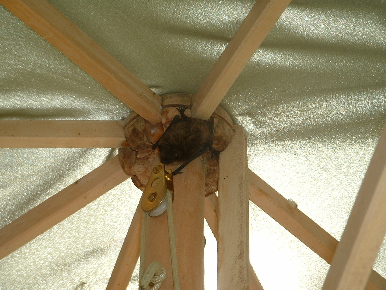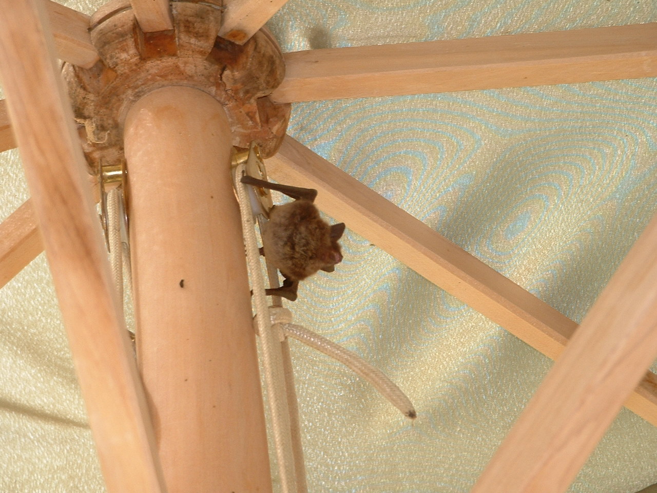Den Mauser haben wir danach oefter gesehen, immer im Sonnenschirm uebertagend, und Gereon hat schon ueberlegt, ein Flederhaus zu bauen. Schliesslich vertilgen auch die Moskitos. Immer her mit den Mausingern!