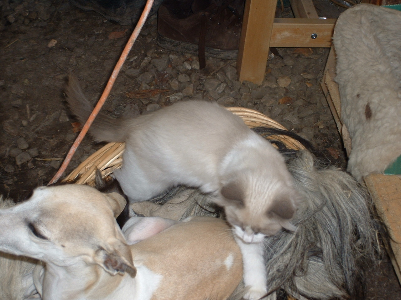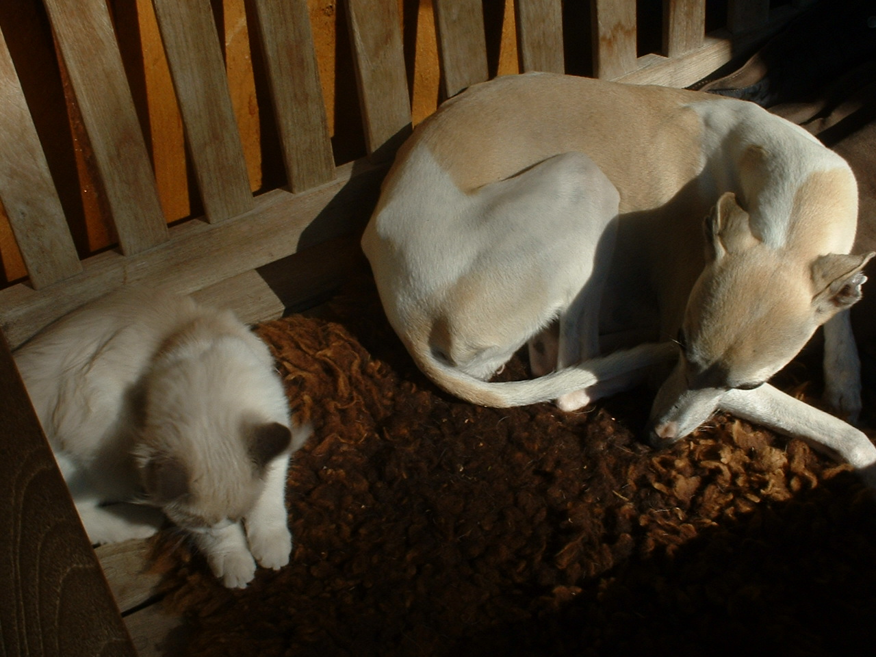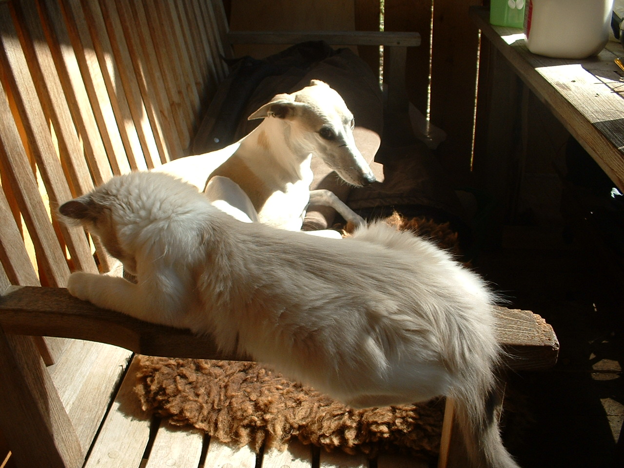 Ueberhaupt sind die Liegegewohnheiten hin und wieder hoechst merkwuerdig, hier eine kleine Auswahl. Dabei ist natuerlich Trudy ein arges Aergernis, versucht sie doch hin und wieder, sich irgendwo ranzuschmeissen, vornehmlich an den kleinen Hund.