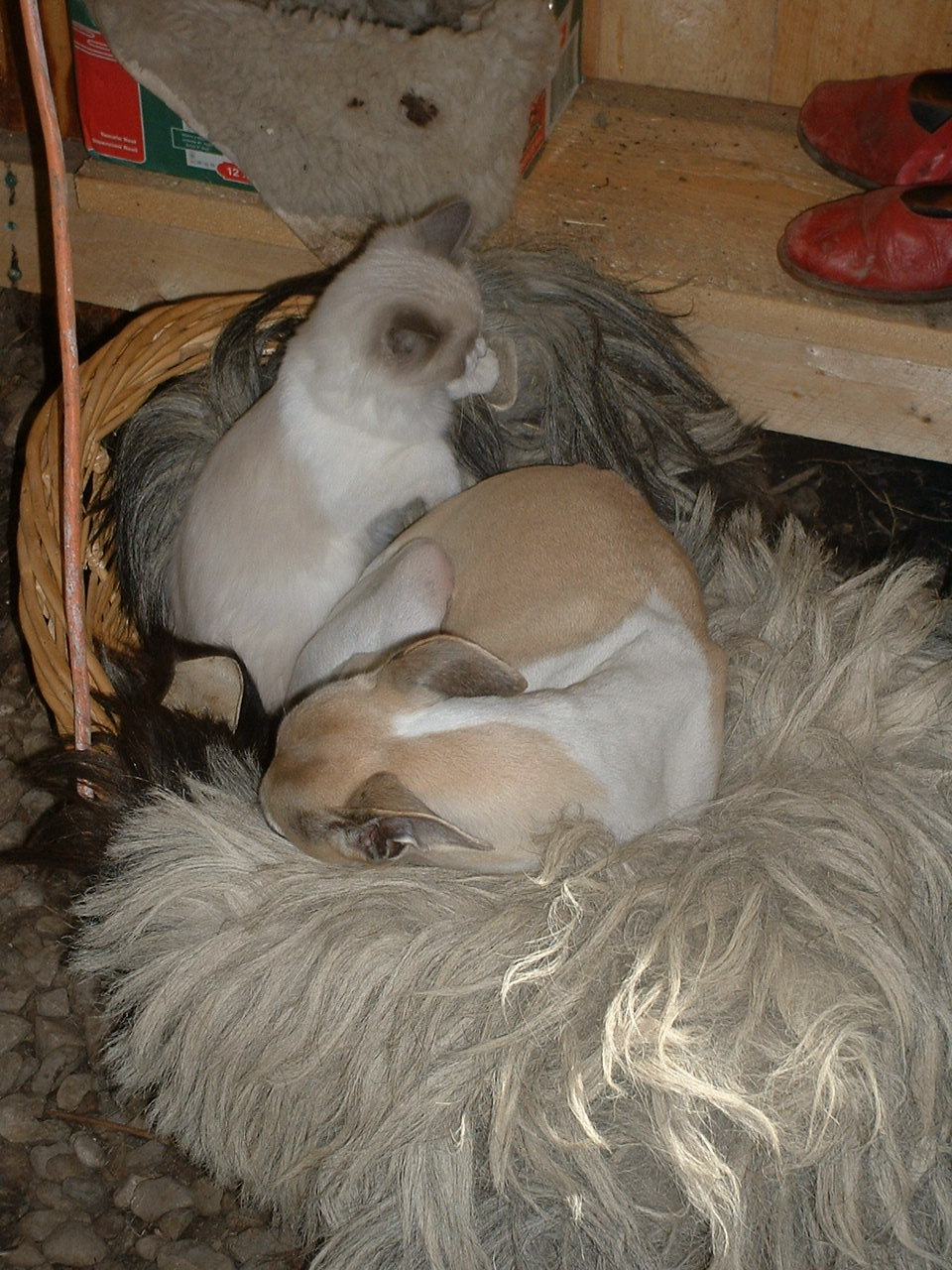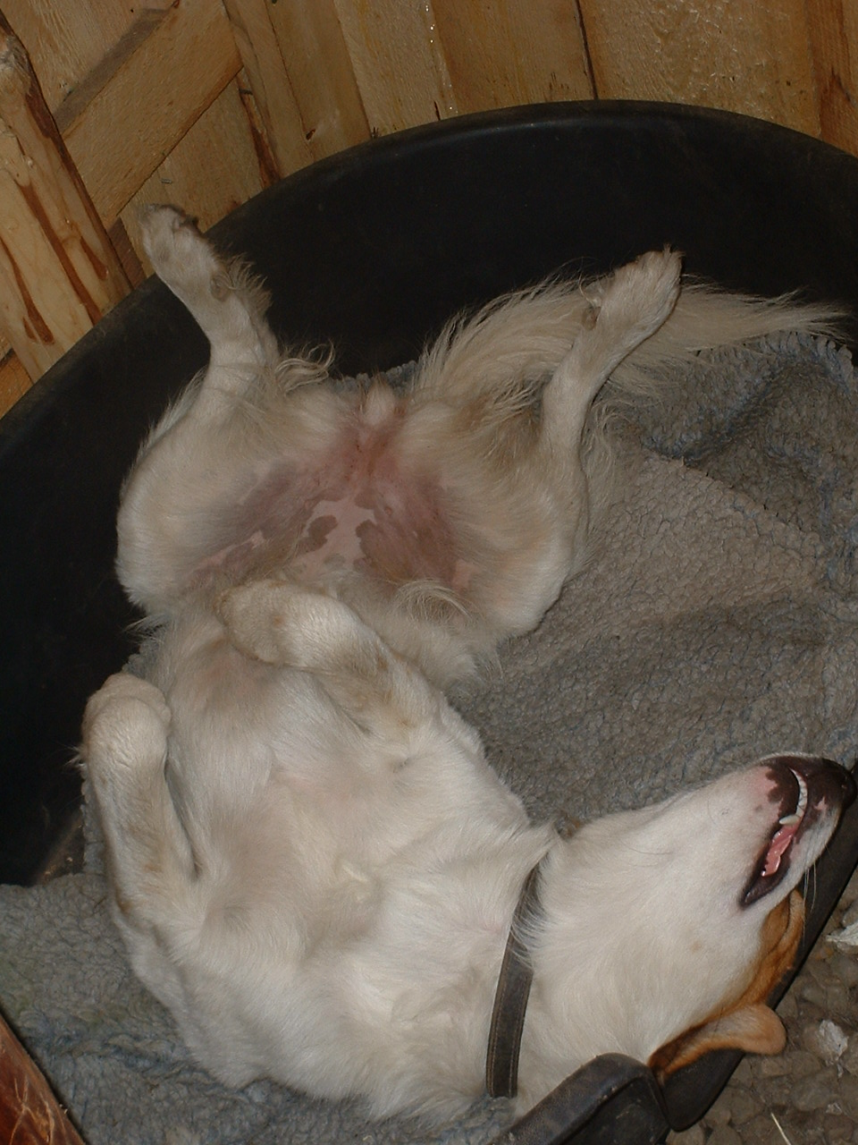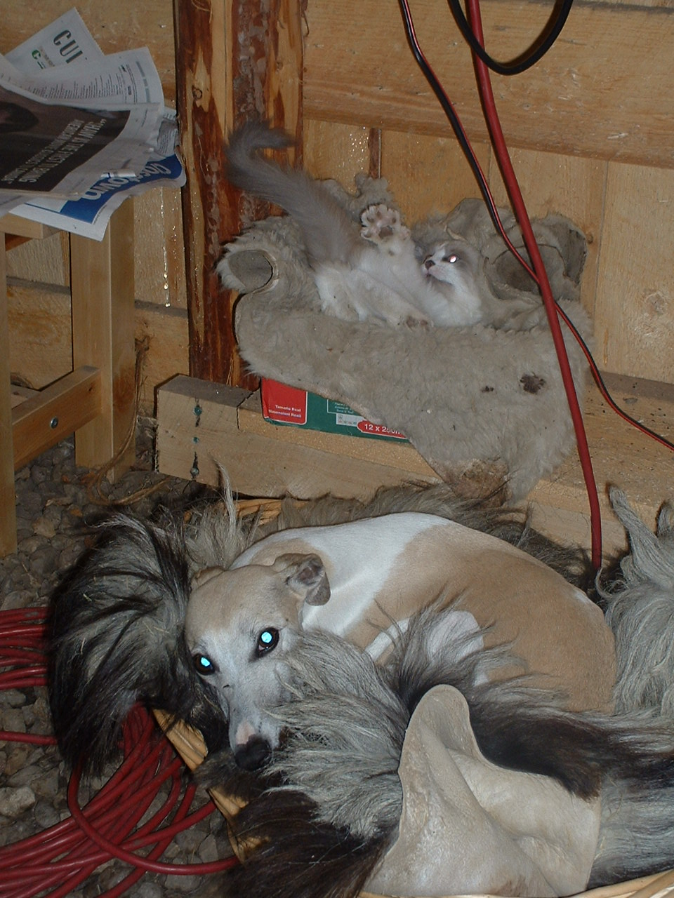 Ueberhaupt sind die Liegegewohnheiten hin und wieder hoechst merkwuerdig, hier eine kleine Auswahl. Dabei ist natuerlich Trudy ein arges Aergernis, versucht sie doch hin und wieder, sich irgendwo ranzuschmeissen, vornehmlich an den kleinen Hund.