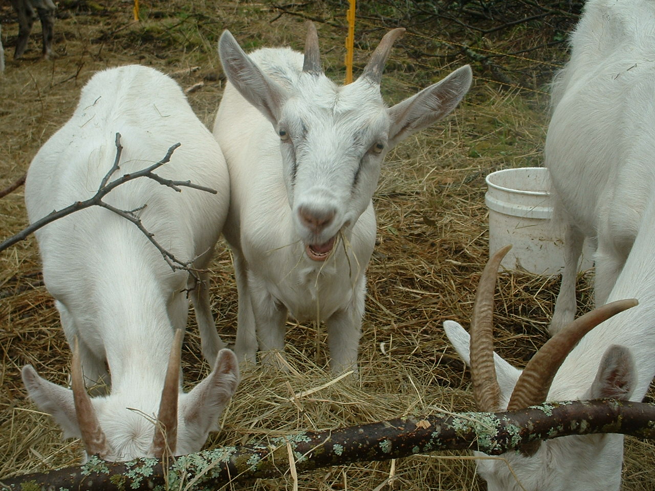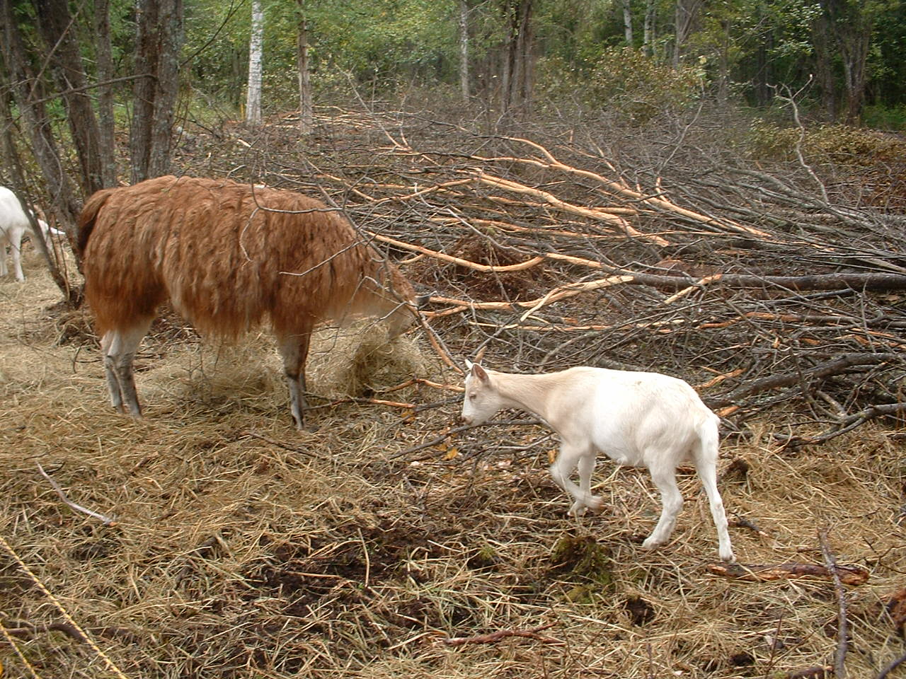 Im Busch arbeiten derweil die Ziegen. Die Kinderchen sind ganz ordentlich gewachsen, auf dem ersten Bild laesst sich gerade einer der Ixis mal wieder vom Lama anspucken, das passiert oefter mal.