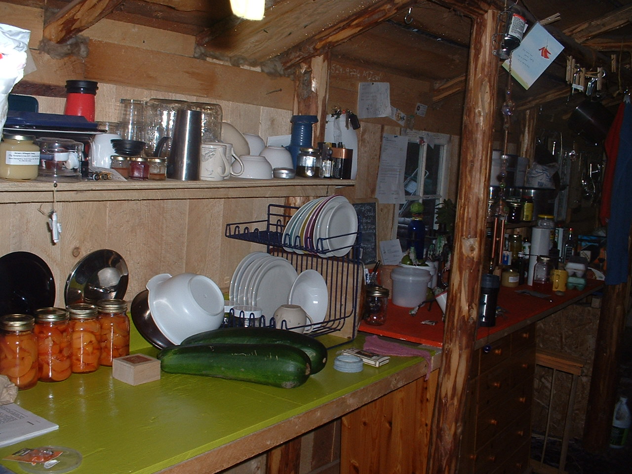 Und als der Obstwagen das naechste Mal aus British Columbia angefahren kam, wurde ich uebermuetig und habe gleich eine Kiste Birnen, eine Kiste Pfirsiche und DREI Kisten richtige Pflaumen, also Zwetschen, erworben. Das war ein wenig voreilig, vielleicht. Bin noch nicht fertig mit dem Einmachen. Aber der Kuehlschrank ist ja jetzt ueberall, das Zeug haelt sich noch. Und Pflaumen essen wir in erstaunlichen Mengen, sowieso. Und so sieht das dann aus: