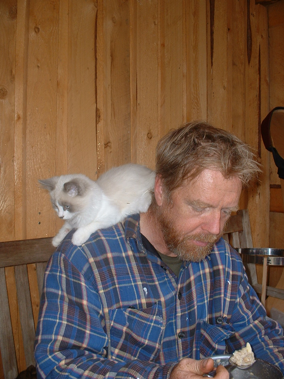 Einige Zeit (genaue Zeitraeume kann ich nicht behalten, alles fliesst hier ineinander, zumal, seit ich „arbeitslos“ bin) hatten wir perfektes Herbstwetter, der Himmel microsoft-blau (das bietet sich gerade so an, am Computer…) und die Baeume nach und nach gelber und gelber. Die Temperaturen waren genau richtig, nachts frisch und knackig, aber noch kein Frost, und tagsueber einfach wunderbar. (Ich merke schon, das wird nix mit den Kapiteln, immer faellt mir was anderes ein.) Das schoene Wetter war naemlich auch da, als wir einen weiteren Besuch von einem jungen Mann mit Begleitung hatten, der der hiesige Experte fuer kleine Waldbesitzer ist (Woodlot Extension Spezialist). Hiesig heisst in diesem Fall, dass sein Gebiet – ich rate mal – ungefaehr halb so gross ist wie Deutschland, na, vielleicht auch nur ein Viertel, aber jedenfalls riesig. Das ist Doug, mit dem ich auch in Fort St. John zwecks Birkensirup-Bildung war. Doug hatte ja unser Land sehr gut gefallen, und so kam er zu einer zweiten Begehung