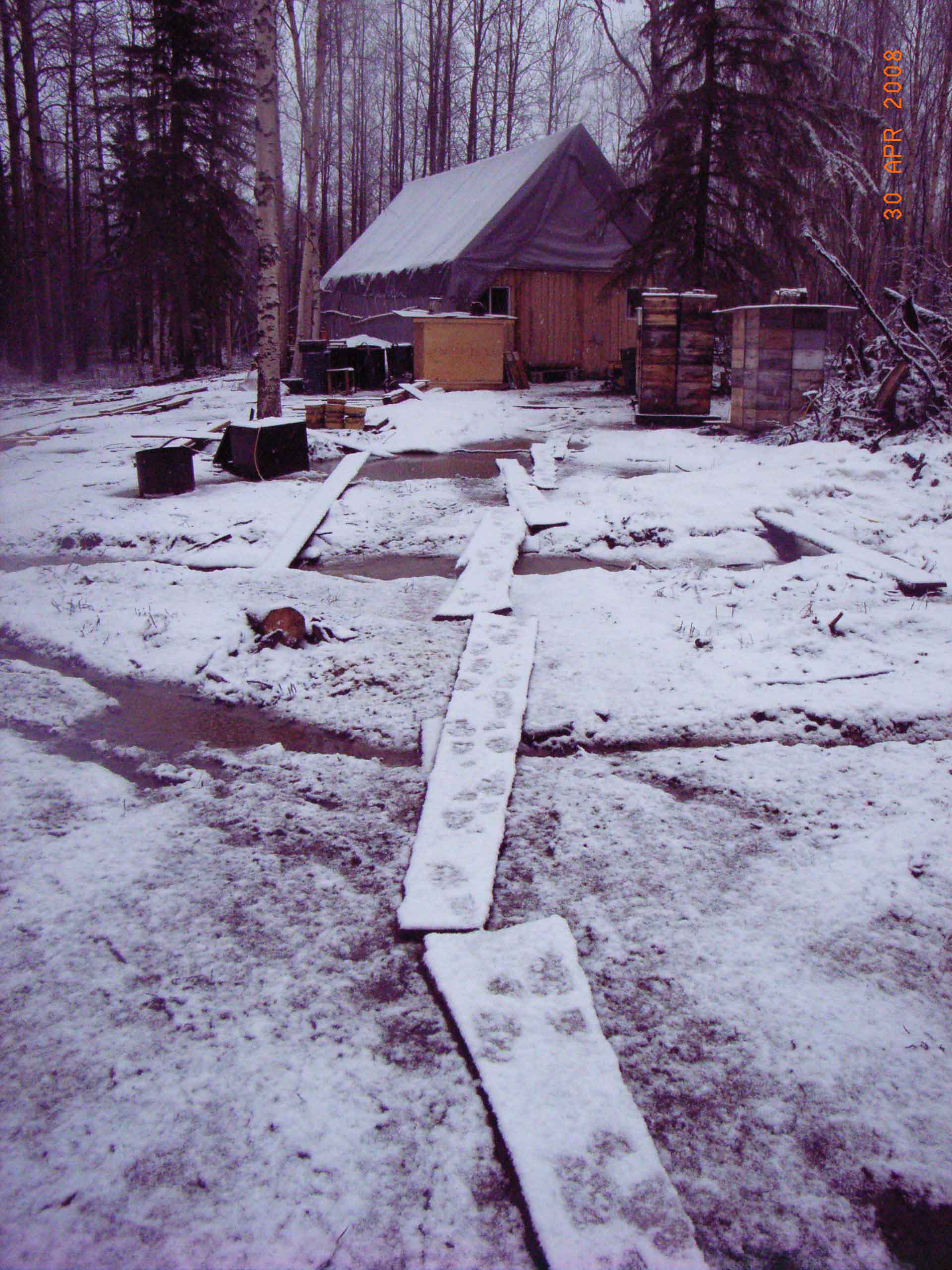 Entenwetter, das hatten wir bis vorgestern oder so. Es hat geregnet, und die Matsche wurde ziemlich graesslich. Mein dicker Van stand drei Tage in der Einfahrt fest, bis Gereon ihn vorgestern endlich ausgraben konnte. Selbst auf der „normalen“ Schotterstrasse wird das Fahren dann zum Abenteuer, weil sich alles in Schmierseife verwandelt. Unser Anwesen verwandelte sich im Nullkommanix in eine Wasserburg, und es fuehlte sich auch alles recht mittelalterlich an. Vorher aber, vorher gab es ja den bereits erwaehnten heftigen Schneefall. Alles in allem verabschiedete sich der April mit einem Donnerschlag – und das auch im buchstaeblichen Sinne. Das erste Gewitter haben wir aus unserem Wintergarten beobachtet, das war eigentlich recht gemuetlich. Am naechsten Tag meinte Karla, dass ihr Vater sie darauf hingewiesen hat, dass man hier in der Gegend sagt: Es sind 100 Tage vom ersten Gewitter bis zum ersten Frost. Na dann Prost!