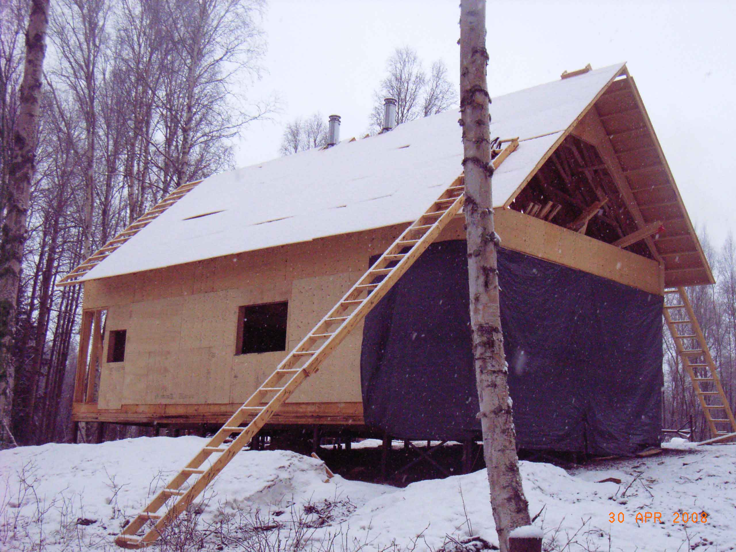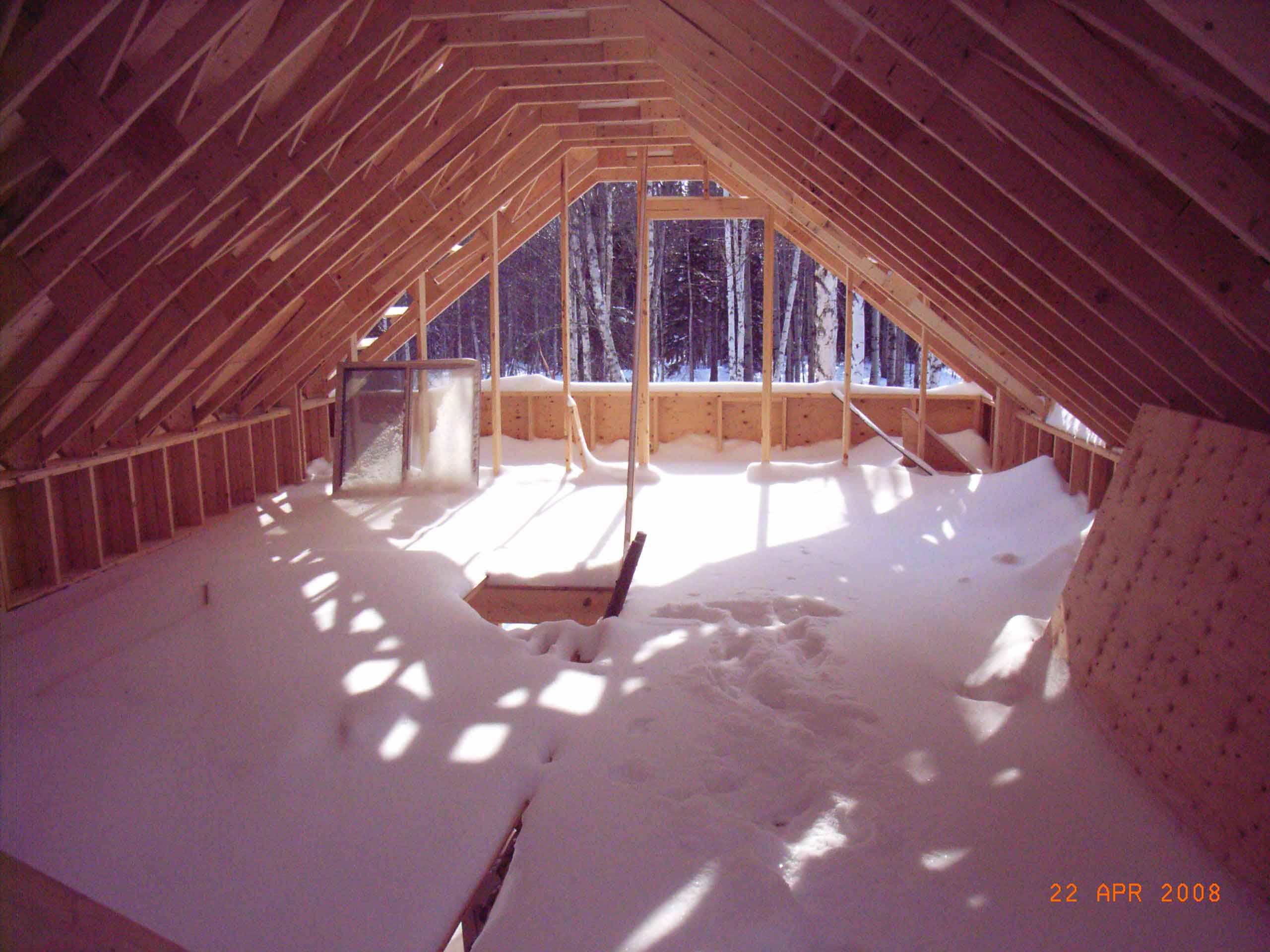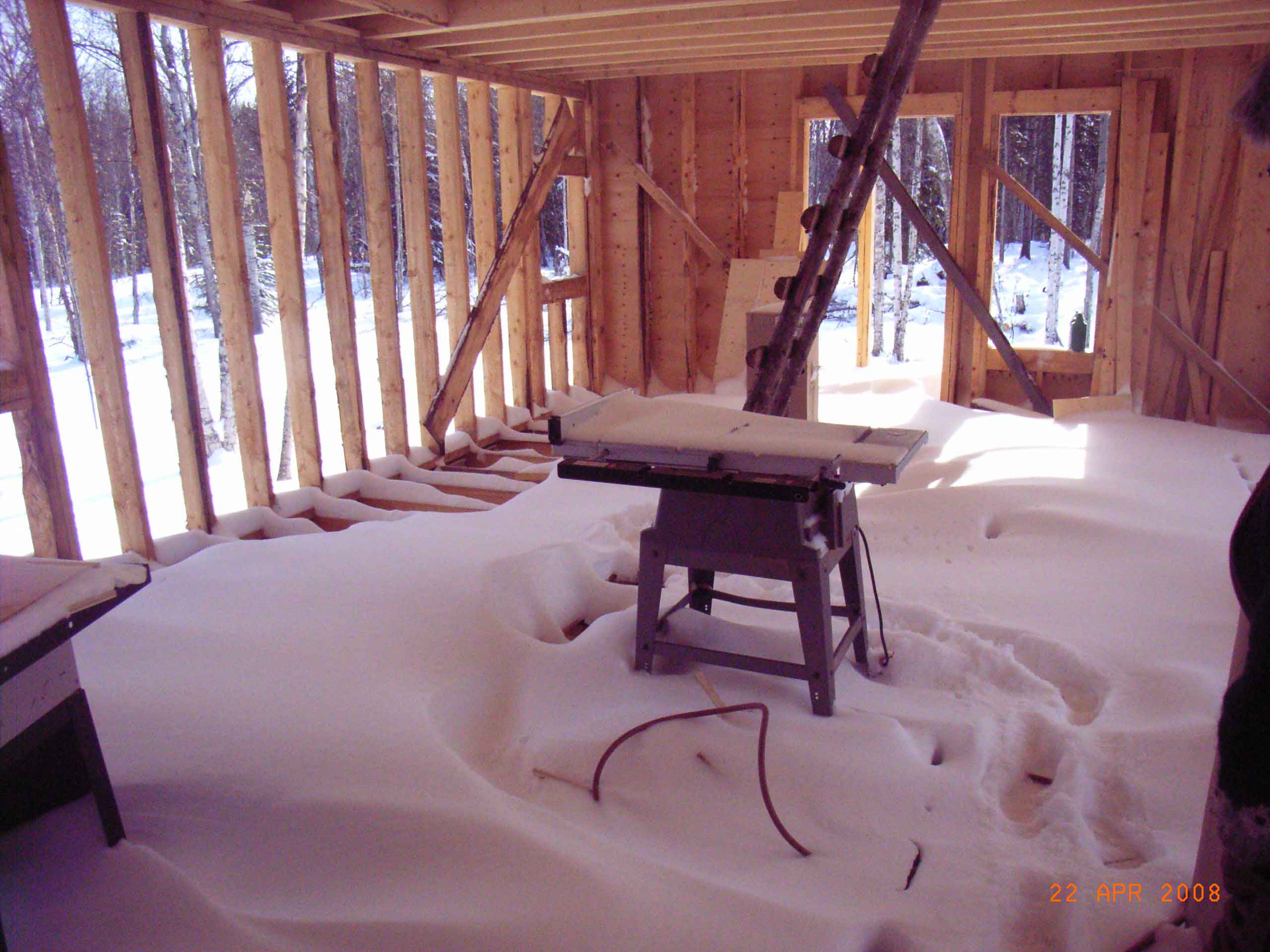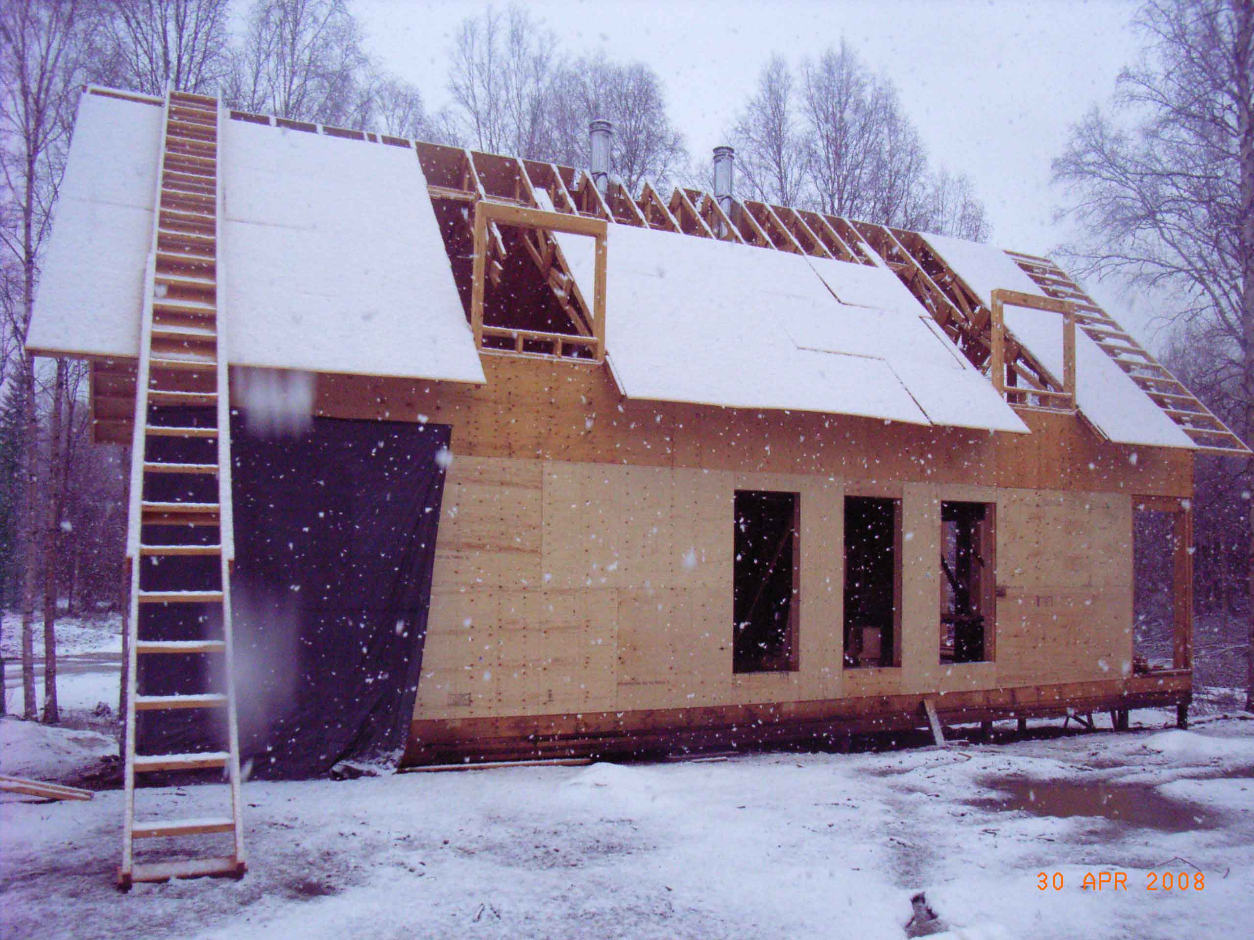 Am letzten Wochenende waren Adam und Katrin da, und das Haus hat nun geschlossene Waende. Ich habe inzwischen Bedenken, dass es doch zu dunkel sein koennte, aber das ist nu zu spaet. Und weniger Fenster machen das Heizen auch leichter. Seit gestern ist Thomas da, und jetzt ist auch das Dach geschlossen und die Fugen versilikonisiert, so dass der naechste Regen, wenn er denn kommt, nicht mehr zu ernsthaften Ueberschwemmungen im Inneren fuehren duerfte.