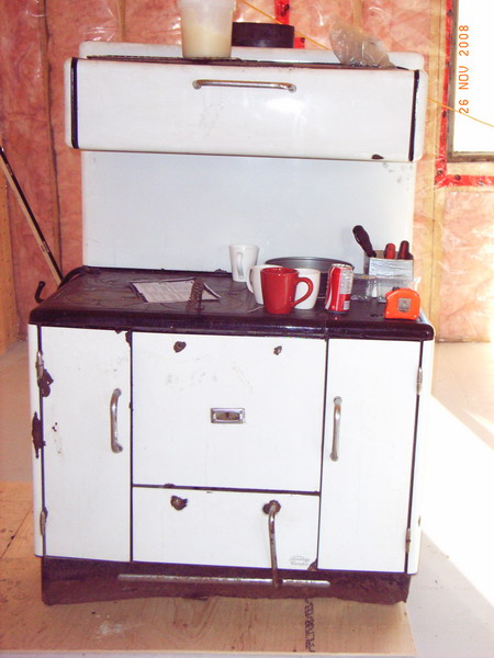 Zackig schnell haben wir den Fussboden gestrichen, ging viel schneller, als ich befuerchtet hatte, und puenktlich am Montag morgen rief Phyllis an und meldete sich fuer abends mit dem Kuechenherd an. Ich war ja etwas bange, wir hatten das Ding nie gesehen, und so nach und nach liess man uns wissen, dass natuerlich ein kleiner Reparaturstau bestehe. Doch so sieht er jetzt aus