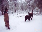 Inzwischen etwa 24 oder 25 cm. Die Schweine sind entsetzt, die Ziegen auch nicht froehlich, die Lamas lassen sich nix anmerken, sind aber ziemlich nass. Wir haben es gemuetlich im Haus. Der Strom bei den Nachbarn ist auch wieder da. Also alles in trockenen Tuechern.