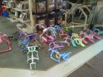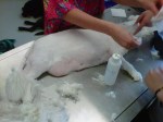 Hier also ein bisschen aus der Praxis: Ein Stachelschwein-Angreifer, der mit geschlossenem Maul noch ganz normal aussah. Aber dann… Es dauerte fuer zwei Stachelzieher eine halbe Stunde. Ausserdem: eine wirklich fette Katze beim Haarschnitt in Narkose. Und Bruno, der knapp 72 kg schwere Pyrenaeenberghund, den ich wirklich ausnehmend gross fand. Michelle in Tuerkis macht mal die Streichholzschachtel. Und dann, ganz ohne Tierarztpraxis, aber frisch von Keddie’s, meinem Lieblings-Farm- und Westernladen in der Stadt: Roping Dummies. Anhand dieser Rohrkaelber koennen offensichtlich auch schon kleinste Kinder das Lassowerfen ueben. Natuerlich auch solche Kinder, die eigentlich mit rosa Barbies spielen wollten… Im Hintergrund in braeunlich: Ein roping dummie in Original-, also Kaelbergroesse. Und jetzt is Schluss, mehr Bilder gipps heut nich.