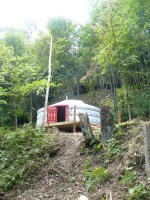 Natuerlich ist das ein Foto vom vorigen Standort, so’ne Berge ham wer nich. ETA 6. Juli. Aufbauplatz bereits ausgeguckt, (relativ) baeren- und wolfssicher im Hof, tatsaechlicher Aufbau noch unklar, da Haende gebraucht werden. Und Holz. Und goodwill vom Chef (das kann manchmal das schwierigste sein). Aber so ist der Plan. Wappnet euch schon mal! Jetzt aber wirklich auf Absenden druecken!