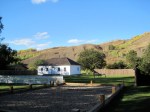 Eine andere Tour fuehrte uns zur Dunvegan Bridge, die Richtung Fairview ueber den Peace River fuehrt. Es gibt dort einige historische Gebaeude von Fort Dunvegan, einer Niederlassung der Northwest Company oder der Hudson’s Bay Company oder wie auch immer (man moege mir historische Unkorrektheit verzeihen) und eine Gaertnerei, wo wir Crab Apples gepflueckt haben und in der – weil sie ab Oktober geschlossen ist – schon der Weihnachtsbaer tobte. Jede Menge Weihnachtsbaeume im vollen Ornat. Ein wenig befremdlich bei strahlendem Spaetsommerwetter.