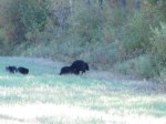 Nach der Shaftesbury Ferry haben wir uns, sozusagen auf den letzten Druecker, eine Tagestour an den Lesser Slave Lake gegoennt. Ich war da bisher nur einmal entlang gefahren und hatte nicht viel gesehen. Der See ist fast 90 km lang, und am Ostende ist eine Vogelbeobachtungsstation. Die haben wir auf Empfehlung von Katrin angesteuert – guter Tip! Eine sehr moderne und durchdachte Anlage, wie es scheint, mit einem sehr schoenen Hostel, das man mieten kann. Wir sind ein wenig am Strand entlang gewandert, haben Huehnchen und einen Kojoten gesehen und uns die warme Sonne auf’s Haupt scheinen lassen. Auf weitere Empfehlung der freundlichen Mitarbeiterin in der Station zogen wir dann weiter zum Marten Mountain, einem Berg ganz in der Naehe, auf dem sich auch ein Fire Lookout befindet. Jetzt, im Spaetsommer, wirklich ein sehr schoener Platz. Und freundlicherweise war die Baerenfamilie, die wir schon auf dem Hinweg gesehen hatten, fuer den Rueckweg noch einmal angetreten fuer ein Foto.