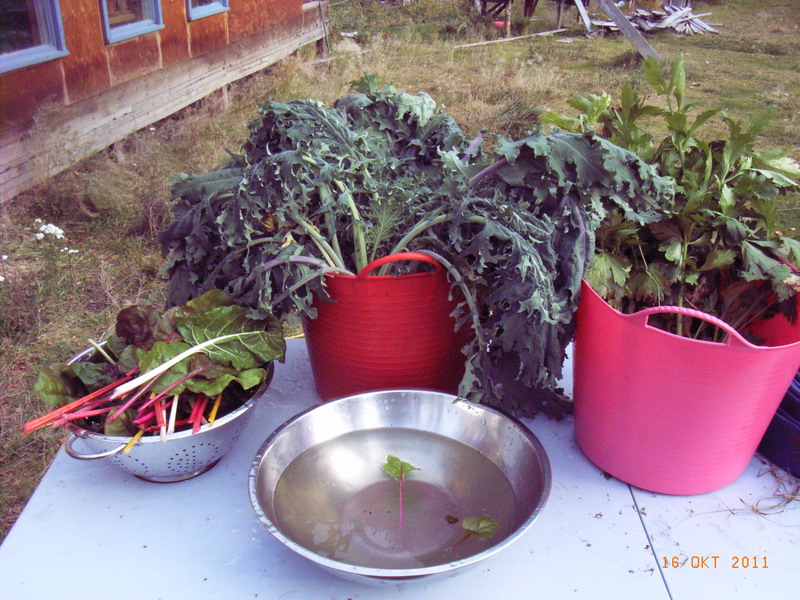 Es gab noch eine schoene Portion Mangold, die sich im Hochbeet ganz gut gemacht hatte, und dann schnitt ich diesen mystery kohl.