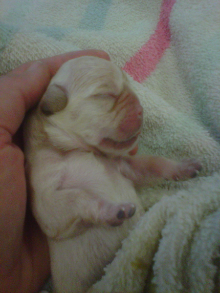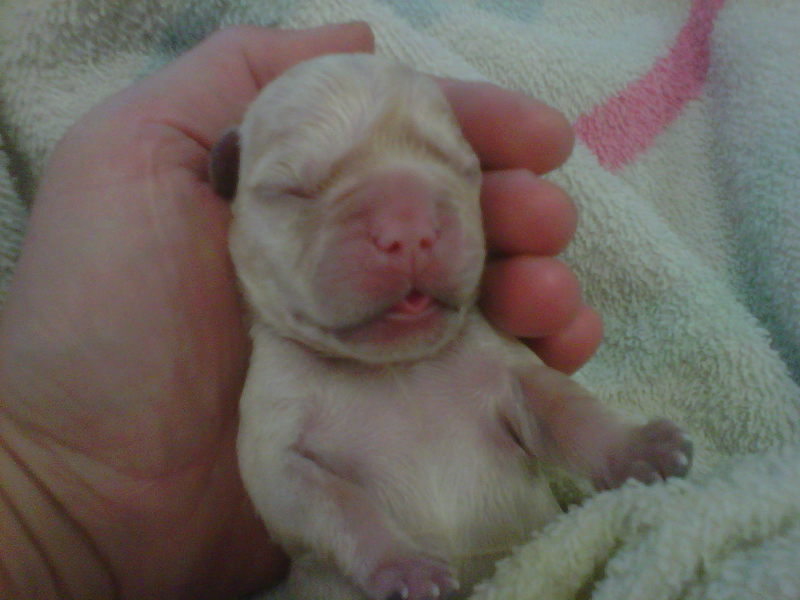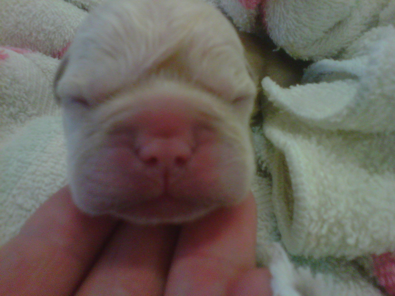Neben den zahlreichen unvernuenftigen Tierhaltern und den leider jetzt im Herbst wieder zahlreicheren abgegebenen Streunern gibt es immer wieder Highlights. Das erste ist ein Kaiserschnittchen, das einzige Welplein einer Franzoesischen Bulldogge, das aufgrund seines dicken Kopfes nicht natuerlich geboren werden konnte. Ich hatte die ehrenvolle Aufgabe, es rosa und ins Leben zu rubbeln – erfolgreich abgeschlossen 🙂