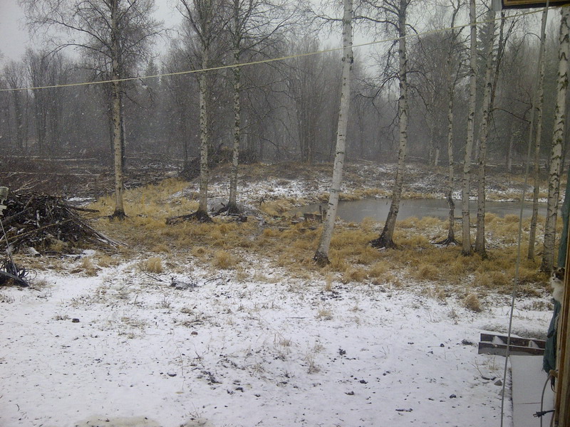 Waehrend die Schwiemu und der Herr Chef im stroemenden Regen (!), gestaerkt durch nicht unerhebliche Portionen Reibekuchen, unterwegs sind, um die zweite (!) Wildkamera zu installieren, nutze ich die Zeit, um euch anhand von ein paar Bildchen zu zeigen, wie Fruehling in Alberta aussehen kann. Wie gut, dass ich heute den Regenmesser aufgehaengt habe! Aber auch wenn die nachfolgenden Fotos nicht fuer jedermann schoenes Wetter signalisieren, moechte ich an dieser Stelle anmerken, dass in der Tat der Himmel meist blau ist und wir ausserdem und zu meiner grossen und staendigen Freude Unmengen Strom produzieren! Es ist ein Vergnuegen, manchmal einfach ein Licht unnoetig lange brennen zu lassen – man weiss kaum, wohin mit dem Zeug! Ich ueberlege an einer Kuechenmaschine, einem Fernseher (gross und flach, haha), mehr Lampen… Mixer? Puerierstab? Mmmmmh – morgen fahren wir nach Grande Prairie…