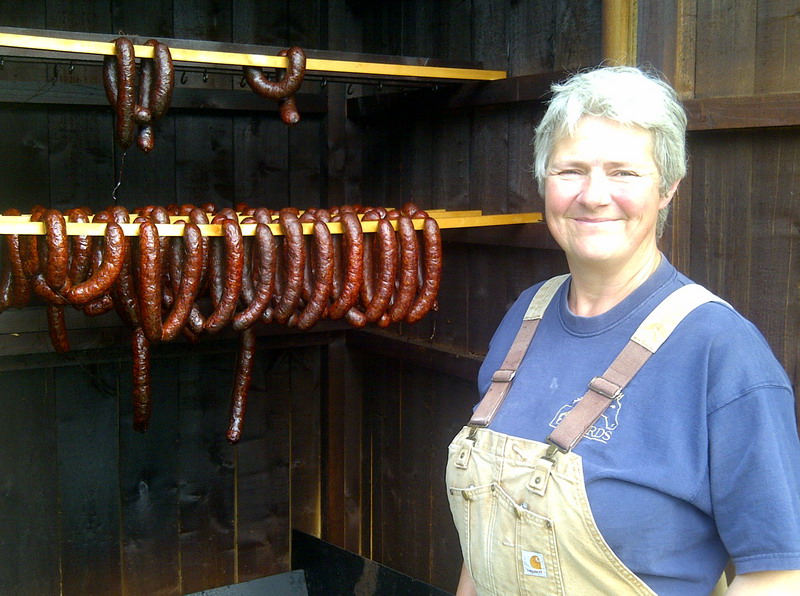 Indessen geht es bei uns langsam und kleinformatiger weiter. Die Ziegen haben sich – nicht so magisch – von sieben nach der Herdenreduktion letztes Jahr wieder auf 24 vermehrt, und es sind noch mehr im Anmarsch. Ehe-erschwerend, sag ich nur… Aber mein Herz huepft trotzdem, und zwar auf nette Weise, wenn ich sie sehe. Weil mein Garten letztes Jahr so ein Desaster war und ich dieses Jahr nicht sehen konnte, wie ich das Desaster mit meiner Muskelkraft in den Griff bekommen koennte, habe ich mir, waehrend Gatte und Schwiemu im Gebirge waren, kurz entschlossen eine Fraese gekauft. Fraesen heissen hier Tiller. Und so gibt es jetzt Nadja, und einen Garten nach Nadja-Einsatz. Ich bin begeistert! Und dann war am Sonntag noch Walter hier, und Walter und Nadja im Team sind immer noch Klasse! Er half mir, den Garten wieder ziegensicher und wahrscheinlich auch huehnerfest einzuzaeunen. Jetzt muss nur noch das Wetter mitspielen. Parallel zu meiner Nadja-Erwerbung hatte sich der Chef ebenso still und heimlich einen Traktor gekauft, der gestern angeliefert wurde. Baujahr 1953! Mal schauen, wie das so wird.