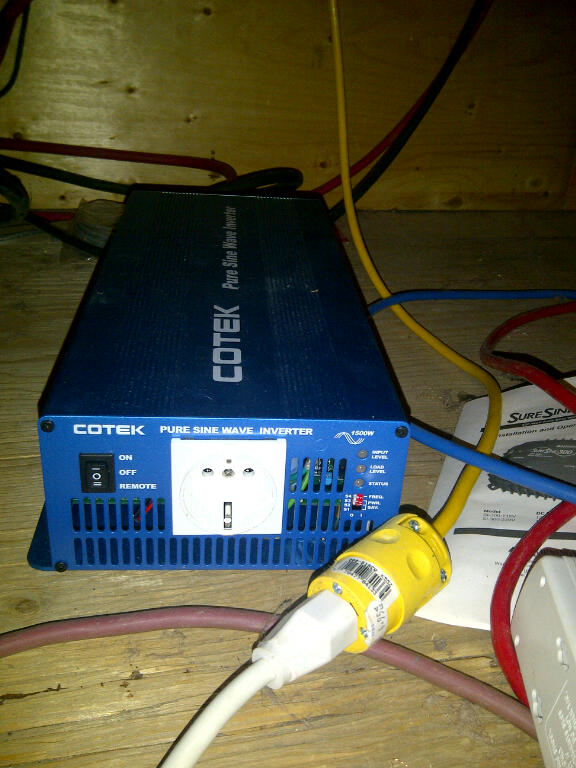 Zumindest theoretisch kommt aus diesem blauen geraet, dessen einzige steckdose ich nicht so genial abgelichtet habe, strom mit 230V 50Hz. Schick, oder? Schliesslich habe ich eine deutsche getreidemuehle, einen krups 3mix, einen puerierstab, diverse lampen, stereoanlage etc.pp., die sich ueber die 50hz freuen. Jetzt fehlen mir nur noch die entsprechenden verlaengerungskabel und mehrfachsteckdosen, und dann geht es mit dem kabelgehaekele weiter.