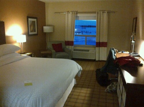Uuuh ich will auch nochmal in einem Hotel schlafen! Mit einem schönen Bad und so! Bist Du heute auch noch in Edmonton oder geht es dann zurück?