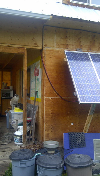 Ein Teil des Regens wird dank Reto nun genutzt: Es gibt jetzt ein Stueck Dachrinne ueber dem Eingang. So tropft es mir nicht mehr immer in den Nacken, wenn ich raus- und reingehe, UND der Regen laeuft in die Faesser. Erschreckend, wieviel Russ drin ist, aber dennoch ist es sehr schoenes, glasklares Wasser, das ich nach dem Filtern durchaus zum Spuelen und Waschen nehmen kann.