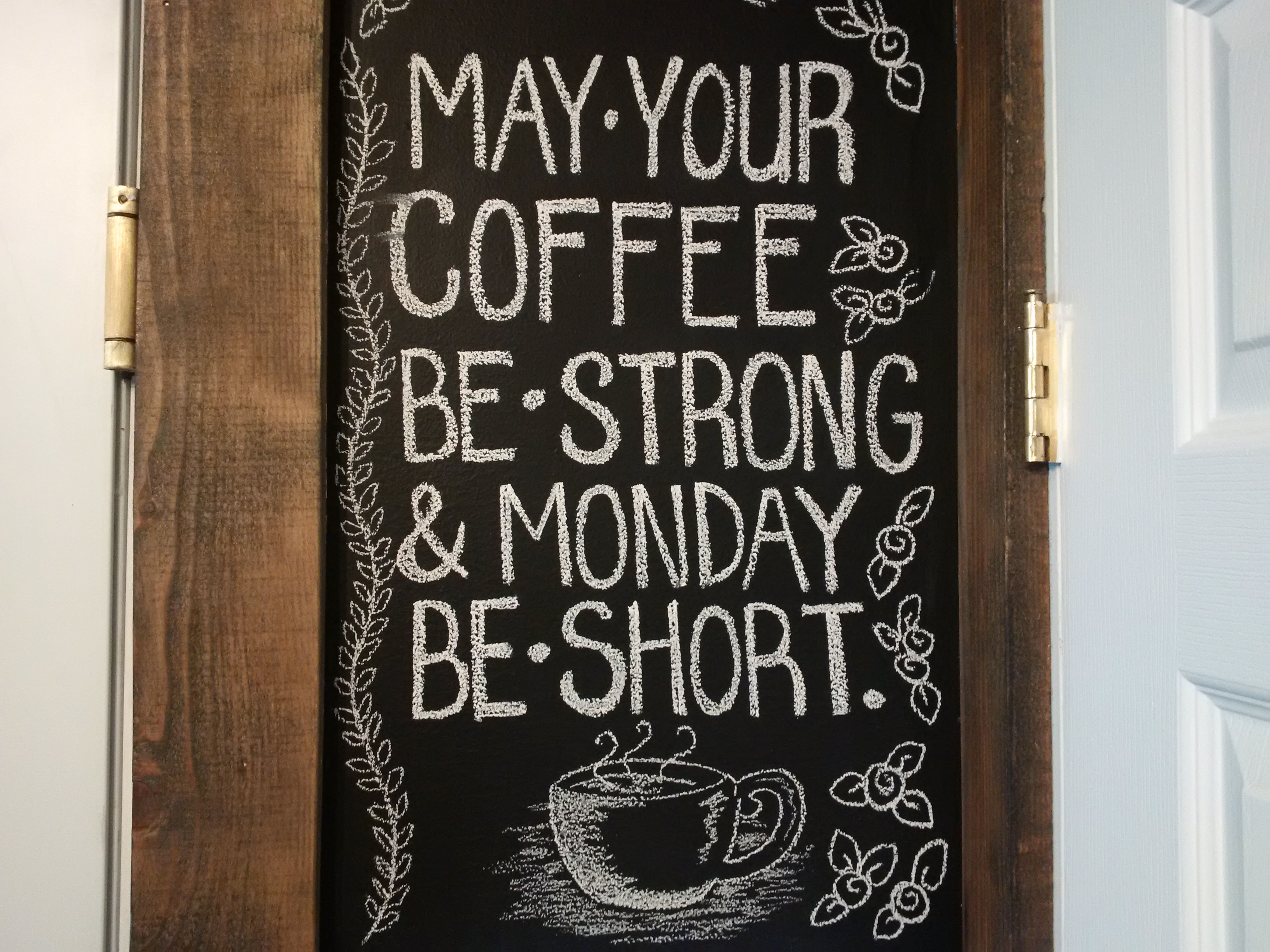Ausserdem gab es nette Sprueche an der Wand, von der jungen Chefin selbst mit Tafelkreide geschrieben.