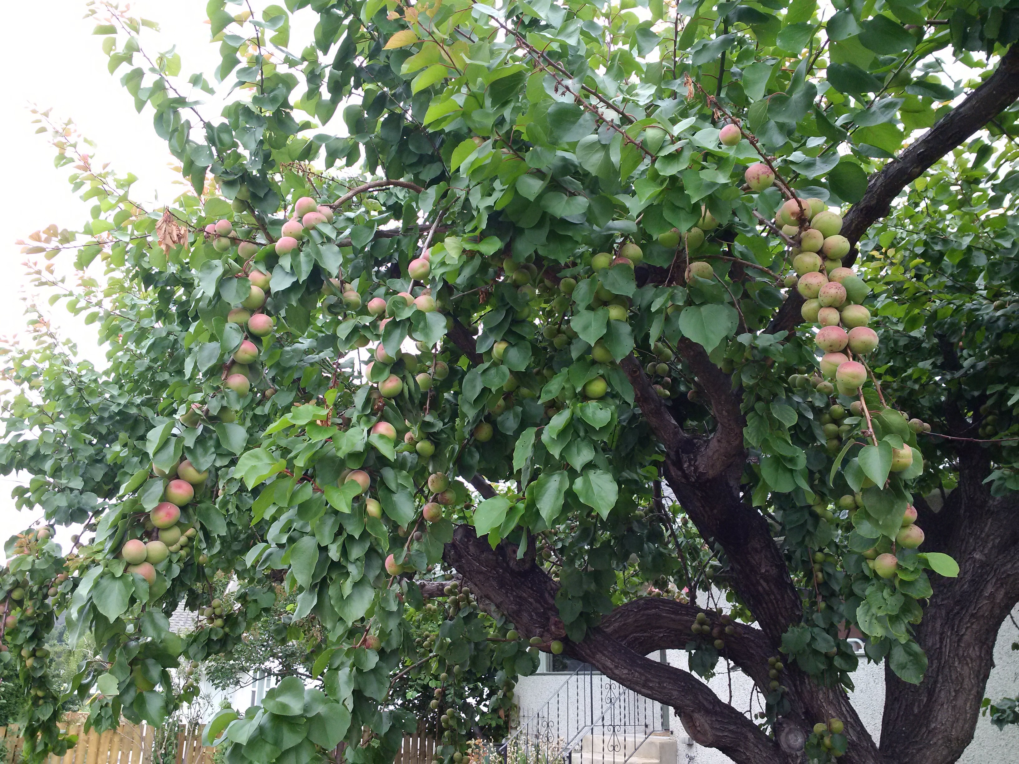 Es gibt ziemlich schicke Haeuser, die dann sehr manikuert sind. Es gibt auch haessliche, ausreichend. Wirklich beneidenswert finde ich, dass die Leute abends lange draussen auf offenen oder ueberdachten Veranden sitzen und lesen koennen – OHNE Moskitos, oder fast ohne. DAS ist schon sehr schick. Auch sehr schoen sind die Gaerten, z.B. mit uebervollen Aprikosenbaeumen: