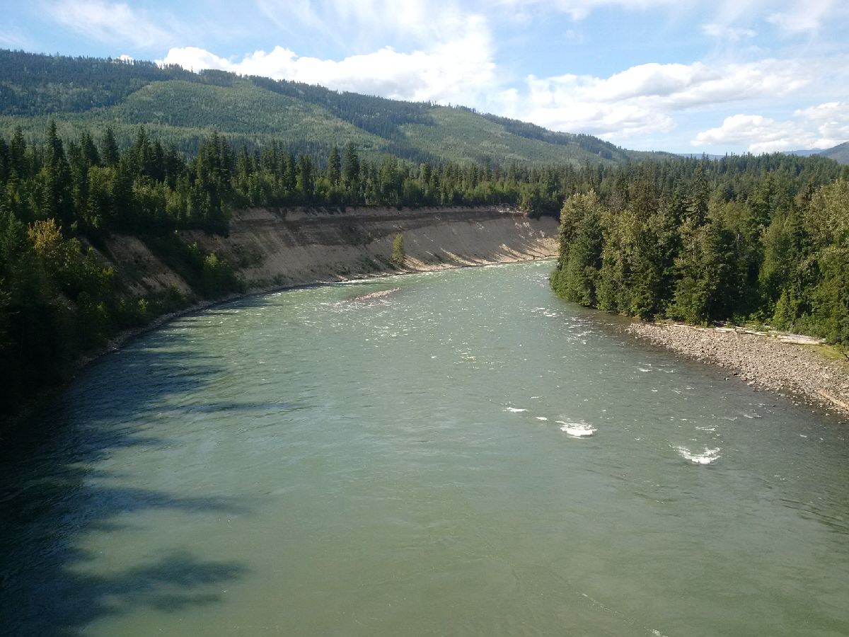 The North Thompson River – which we crossed six times on our way down – already has this particular grey-green that I love in my favourite Athabasca river. The forest is beginning to look different, the hills are almost mountains, and we are very slowly going up and up.