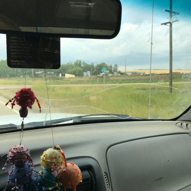 So 103kg of honey went in the pickup, plus my signs, cashbox, etc. Labels had to be printed, don’t forget the table cloth, count the float, feed the animals, turn off the gas heater in the honeyhouse, slide through the mud into the pickup. Drive below the clouds and the definitely late summery landscape. Picture of course taken illegally while driving – nobody was harmed.