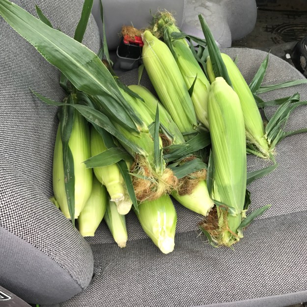 As I was packing up, I realized I had forgotten to get corn for my neighbour, so I ran after the Hutterites. Who gave me 14 cobs for free! Nice! Merry Christmas, Wally said.