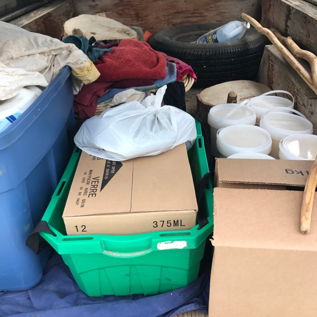 Forgot to take a picture of the loaded pickup. Which also held the laundry that I had not been able to wash the day before as the laundromat was too crowded and I had fresh milk in the back that, right!, I had to put in the freezer in the morning before market. Check!