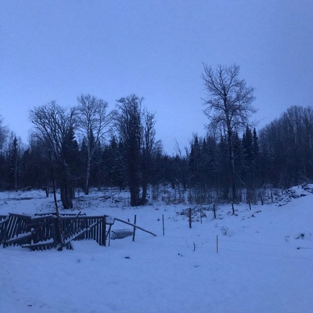 Wir nähern uns dem kürzesten Tag des Jahres, und alles ist langsam, so scheint es. Vor allem ich. Winterschlaf ist Wirklichkeit, ich freue mich über lange Nächte, frühe und späte Dunkelheit, noch mehr Stille und sogar über die fast verschwundenen Farben draußen. Als ich eben, zwischen halb fünf und fünf, meine Tiere versorgte, gab es fast nur noch kleine Flecken von Primärfarben in all den vielen Abstufungen zwischen Weiß und Grau. Sogar der Hund passt da hinein. Der Himmel im Nordwesten ist und bleibt mein liebster.