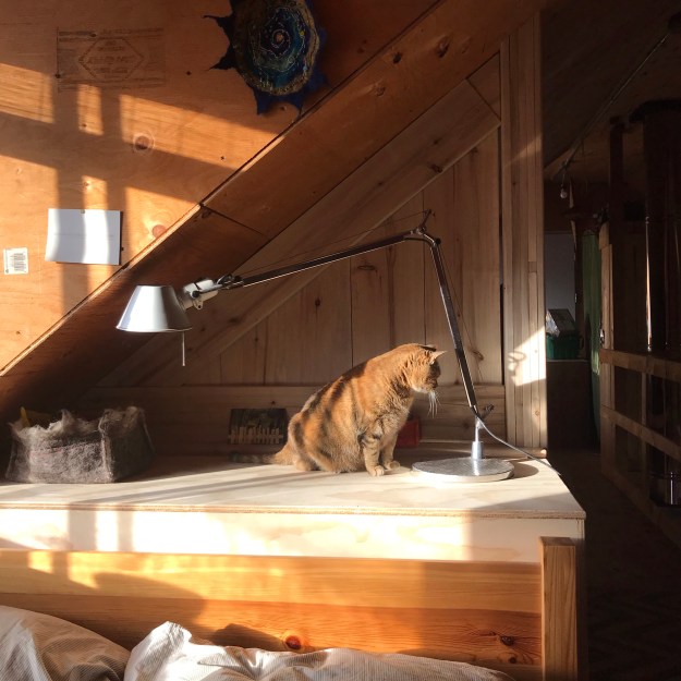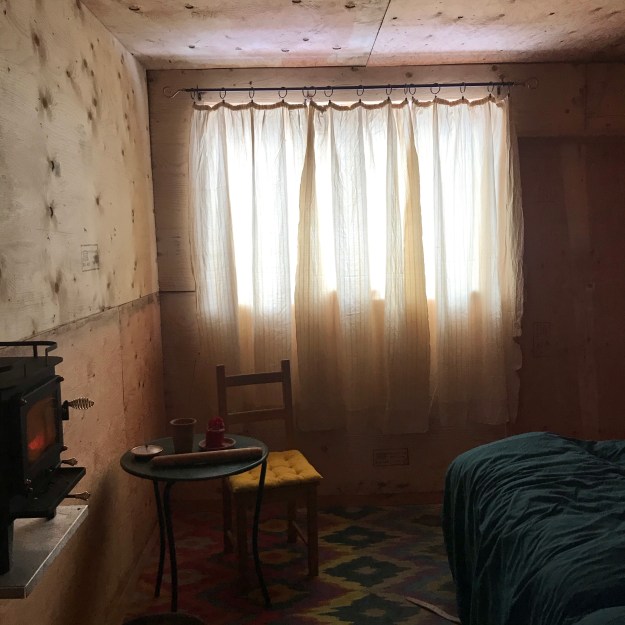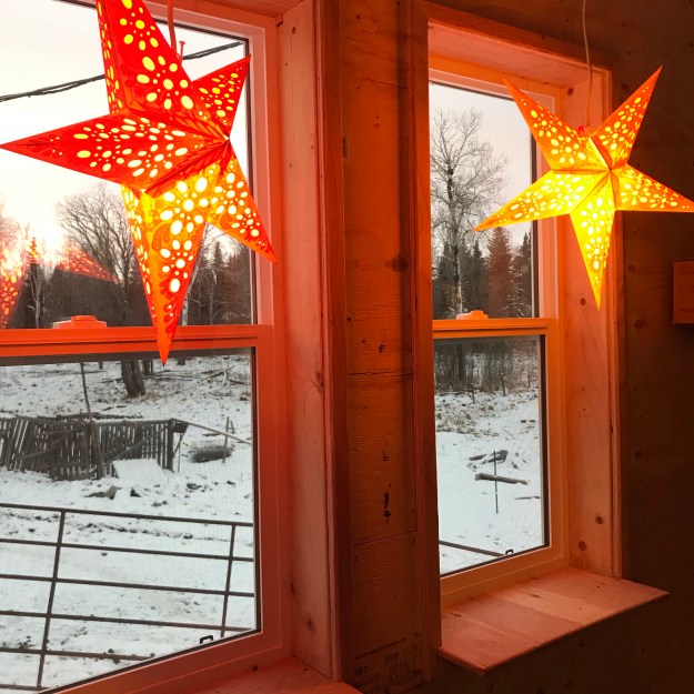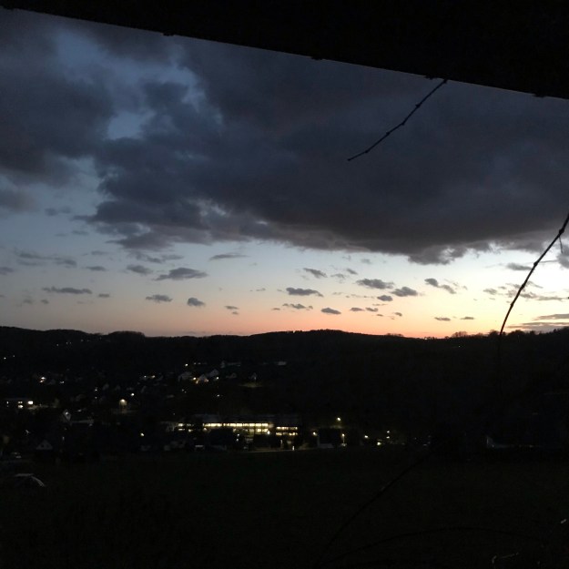 Am naechsten Morgen konnte ich es kaum erwarten und ging schon um 7 wieder rueber – warmer Boden, viel zu warm fuer meinen Geschmack. Thermostat runtergedreht, Gatten angeheuert, um eines der urspruenglichen Fenster nach draussen auszubauen. Und seitdem ist es wunderbar, muckelig warm, aber kontrollierbar, und ich sitze morgens hier mit meinem Tee und gucke mir den Sonnenaufgang an. Luxus!