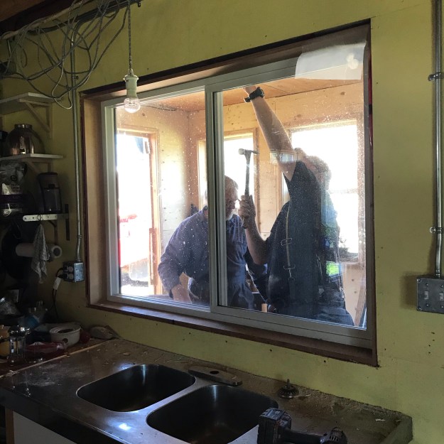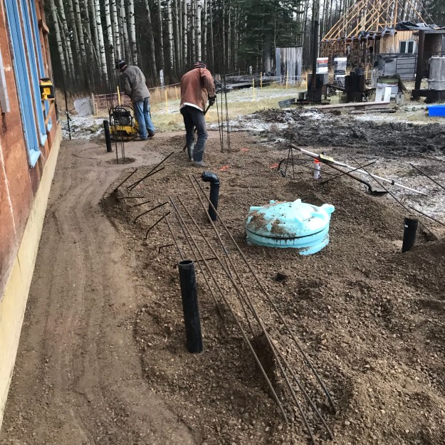 Der Weg in die inzwischen luxurioese Situation war eigentlich gar nicht mehr so schwierig. Ich habe mir aus drei Klempnerangeboten das rausgesucht, was mir das beste schien, leider war es nicht das billigste, aber ich glaube, ich habe eine gute Wahl getroffen. Es ist fuer die Handwerker manchmal gar nicht so einfach, bei uns zu arbeiten – alles ist so gar nicht wie in „normalen“ Haeusern. Ich finde es aber interessant, mich mit ihnen zu unterhalten, und sie sind typischerweise sehr neugierig und fragen ganz oft, wie wir zu diesem Lebensstil gekommen sind. So kamen also vor etwa 14 Tagen der Chef selbst und ein Geselle mit so allerhand Technik angereist. Es wurde gebohrt und gesaegt und gebastelt, Rohre und Schlaeuche verlegt – leider wird hier nicht mehr das attraktive Kupferrohr verlegt, sondern ueberwiegend Kunststoff. Aber mein Wunsch nach fliessendem Wasser und etwas mehr Annehmlichkeiten hat mich sehr tolerant diesen Dingen gegenueber gemacht. Als sie einigermassen fertig waren, sah es so aus.