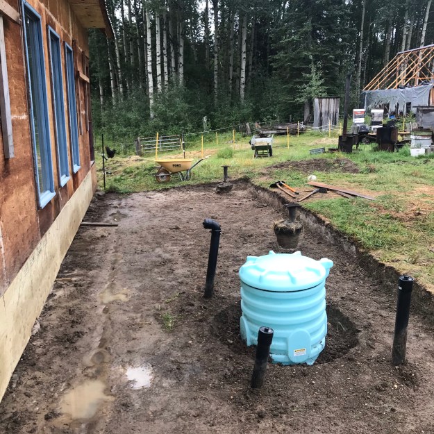 Zwischendurch kam noch puenktlich der Propantank. Und kurz vorher ebenfalls die eingeblasene Isolierung ins Dach. Ein Raedchen griff ins andere, es haette besser nicht laufen koennen.