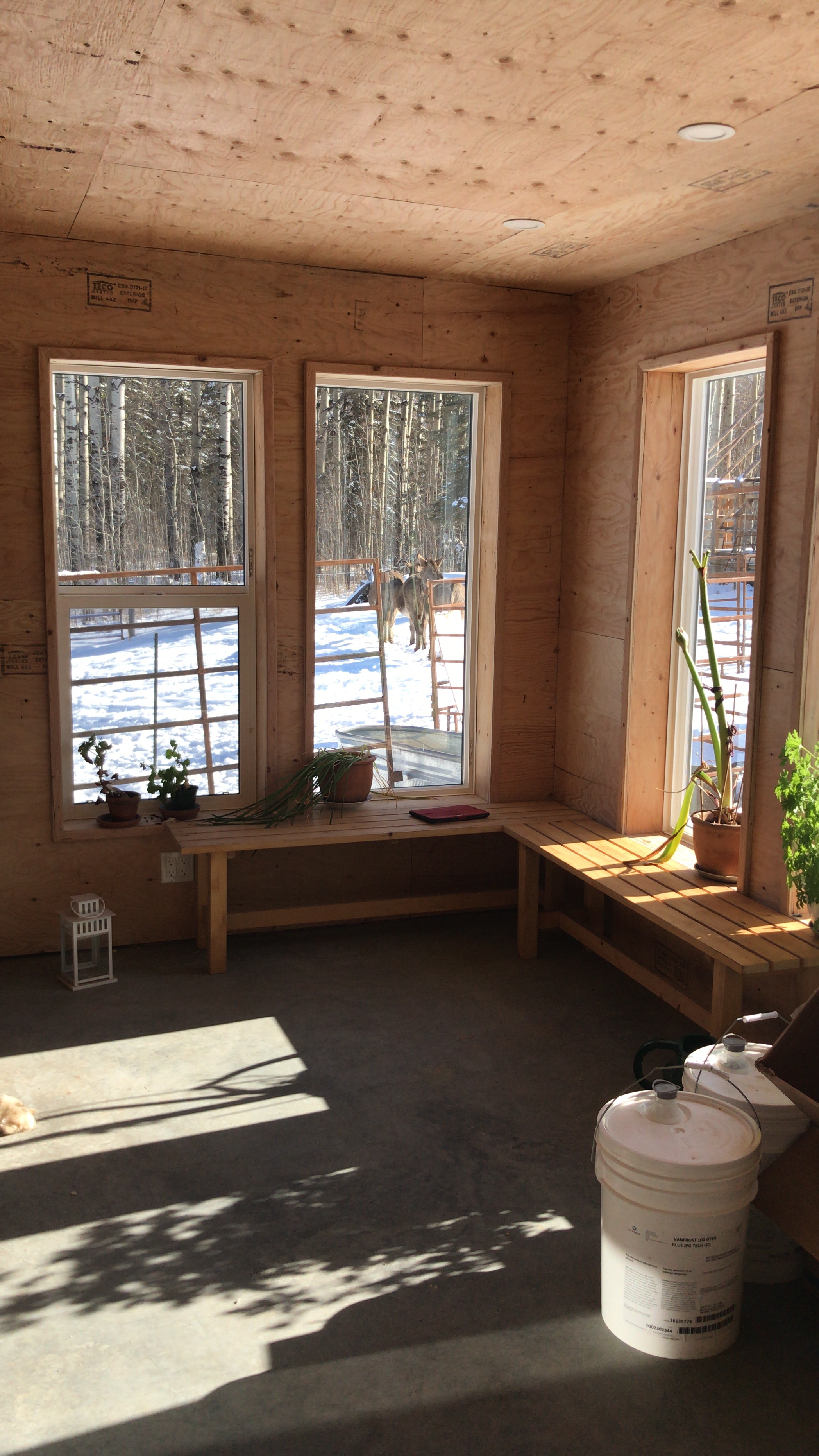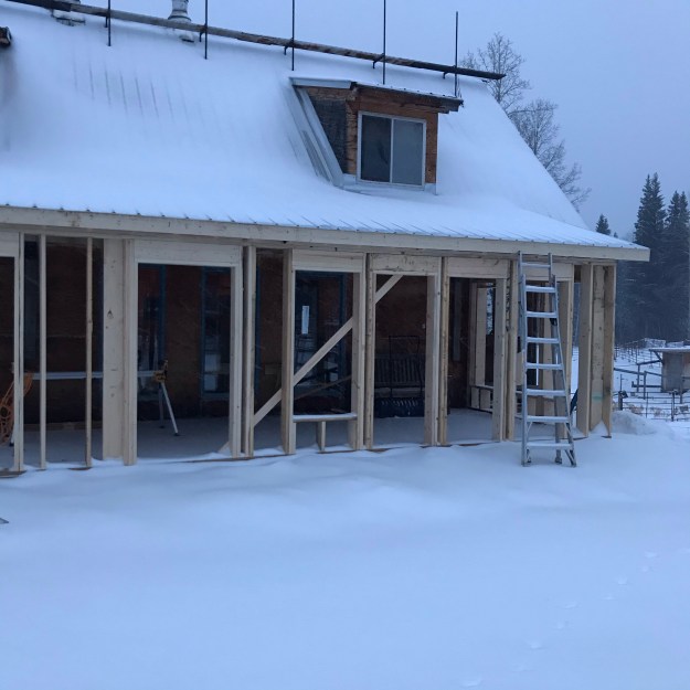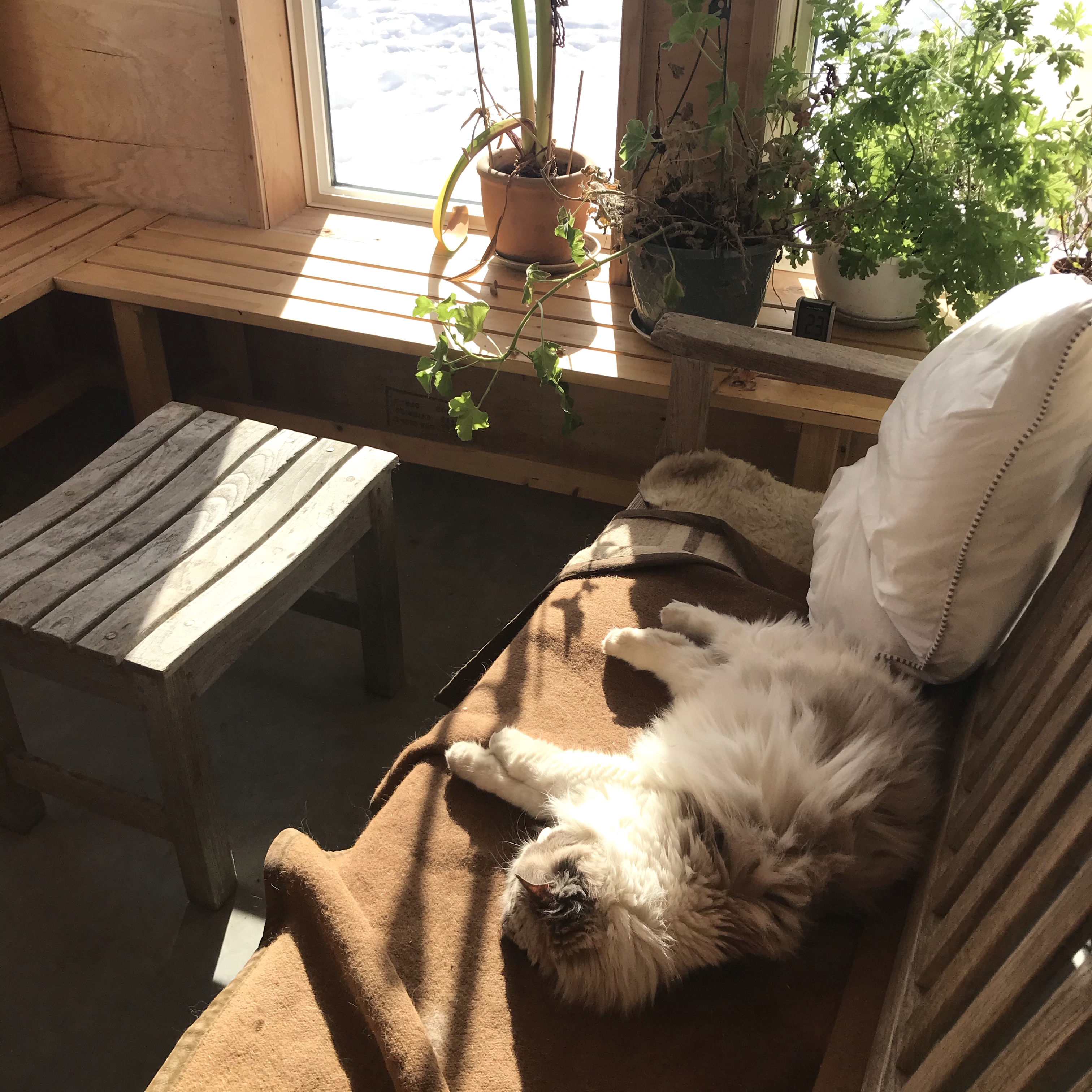 Ich sag’s euch, frau kann echt was schaffen. Waehrend ich das schreibe, sitze ich im sehr gut bewohnbaren „Sun Room“, koennte man wahrscheinlich einen Wintergarten nennen. Draussen liegt immer noch bzw. wieder einiges an Schnee, denn meine Hoffnung auf ein unmittelbar bevorstehendes Fruehjahr im Januar bestaetigte sich natuerlich nicht. Waere auch beunruhigend gewesen, das Wetter ist so schon schwierig und unberechenbar genug. Meine Blick-Optionen sind ungefaehr so: