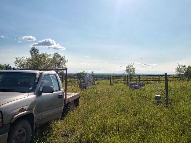 Auch wenn es noch nicht ganz so aussieht: der boreale Wald ist hier schon wieder aufgesprengt durch groessere Wiesen und Felder und, vor allem, ordentlich und rechtwinklig angelegte Strassen, ich vermute nummeriert und nicht mehr mit Namen versehen. In Alberta gehoert das so! Nix mehr Kurven und so’n Krams – geradeaus wird gefahren! In etwa 1,5 Std. Sollten wir in Edmonton sein.