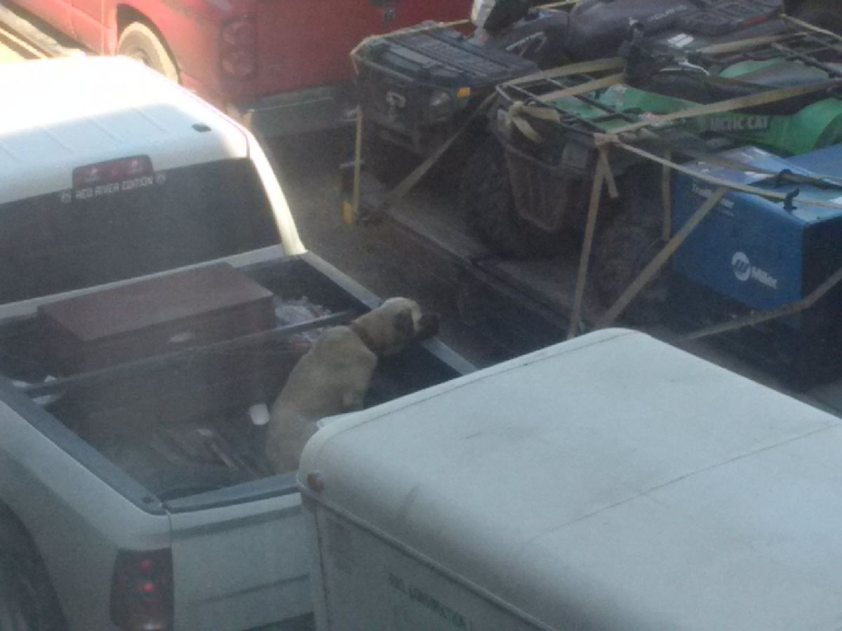 The view, obviously, in this part of the city, is underwhelming, but I saw this handsome dog, stretching and yawning in the truck box and then being a little bored. I would have taken this one, too 🙂