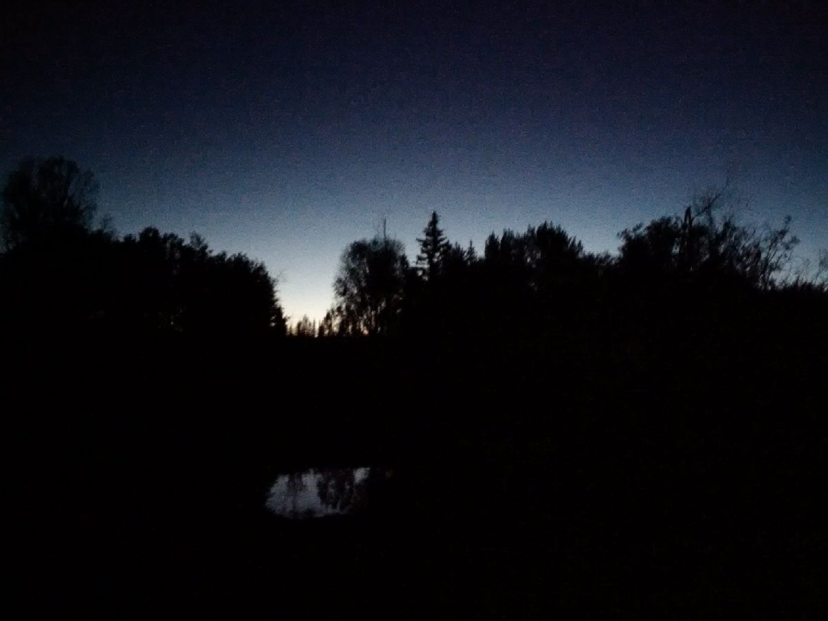 Es kommt mir so vor, als haette ich schon lange keine Sterne gesehen. In Vernon ein paar, aber hier bestimmt seit Wochen nicht – Sommer! Die Schnepfe fliegt umher und macht ihre Schwirr-Klaenge, der kleine Hund hat was wichtiges zu verbellen, aber zurückhaltend, ein Hahn kraeht, und jetzt fangen die Singvoegel an. Aah, und ein Moskito surrt. ansonsten ist es gaaaaanz still – wie schoen! Im Nord-Nordosten wird es deutlich hell, und ich brauche keine Taschenlampe. Die Sterne verblassen, gerade schwebt die Fledermaus ein. Ach ja, und das Thermometer sagt 5 Grad, es ist – angenehm – frisch. Ich fahre jetzt unsere „workawayerin“ vom Bus abholen.