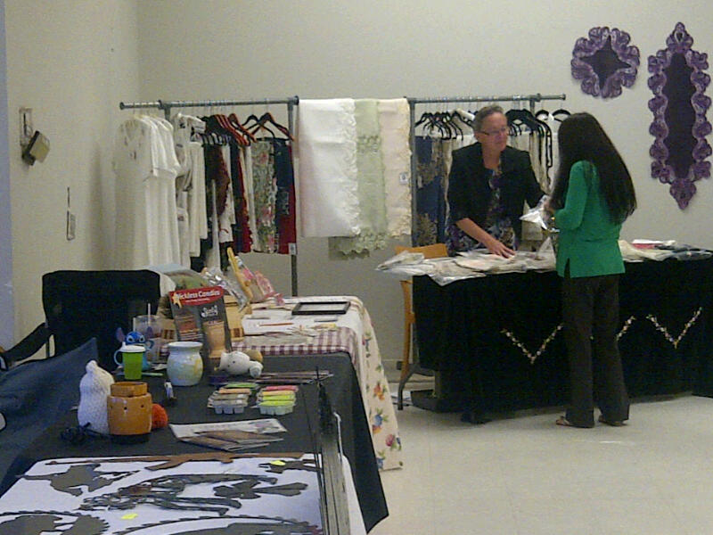 Die dame im hintergrund, mit mennonitischem haeubchen, verkauft spitzendeckchen, nachthemden mit spitze (aber hochgeschlossen) und mitteldecken (die hab ich noch nie leiden koennen!). Ich nehme an, der ganze kram kommt aus china. Zu meiner groessten verwunderung sind selbst juengere frauen begeistert von den artikeln.