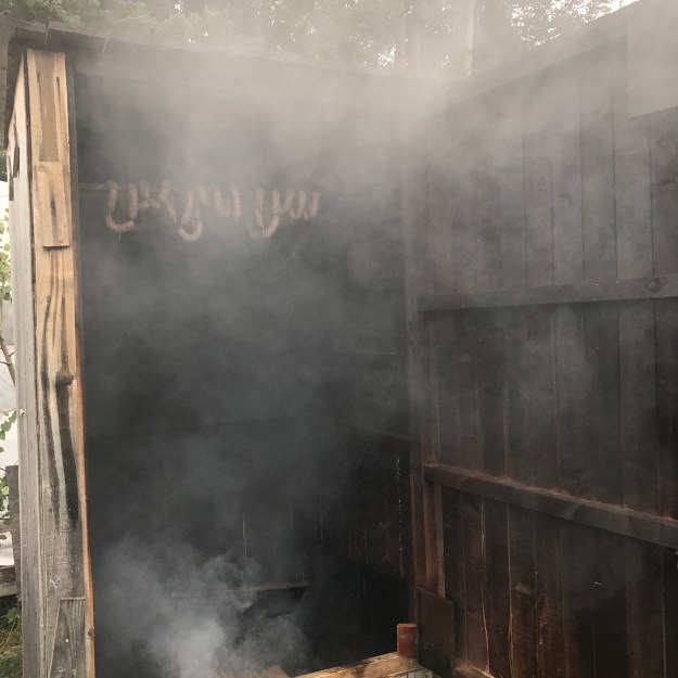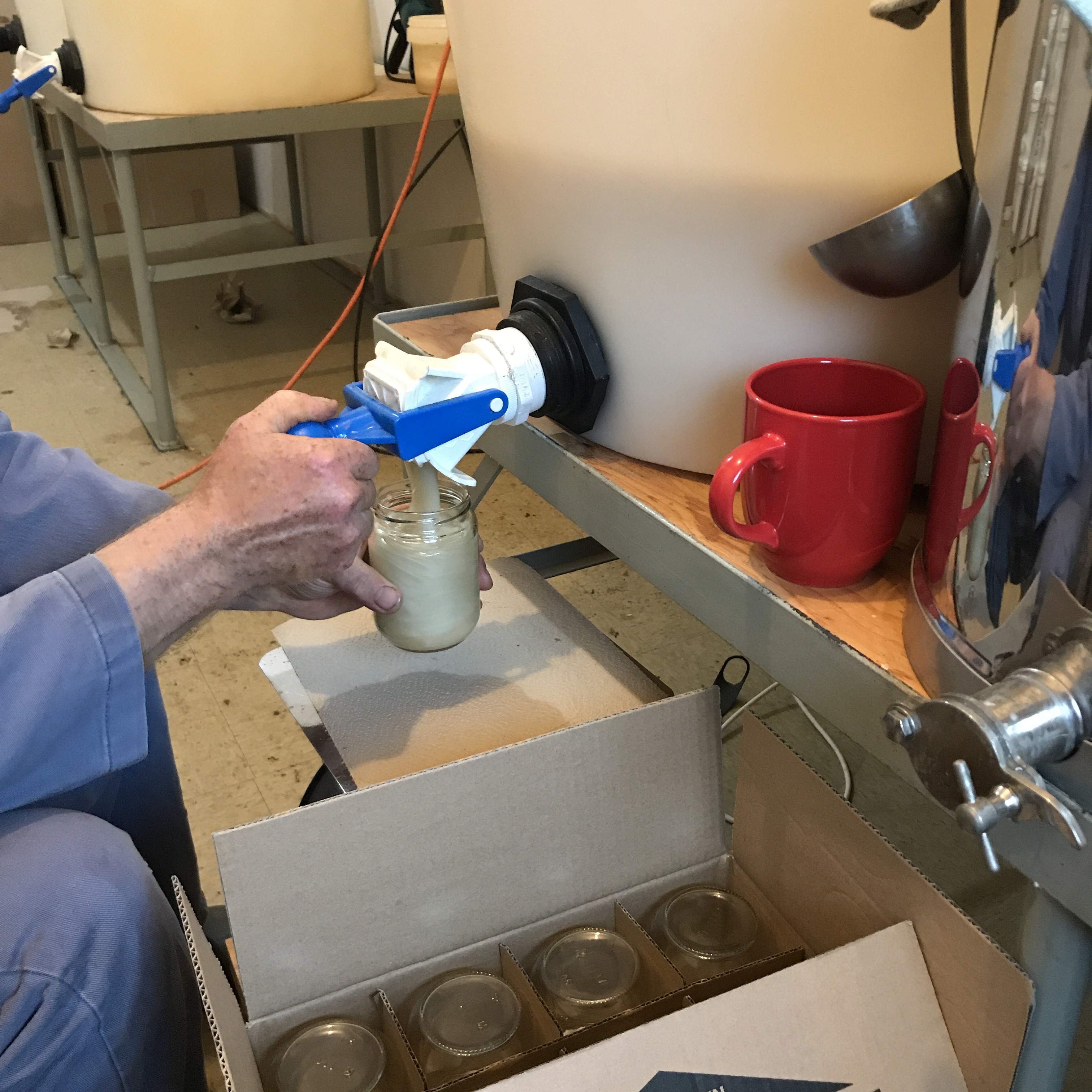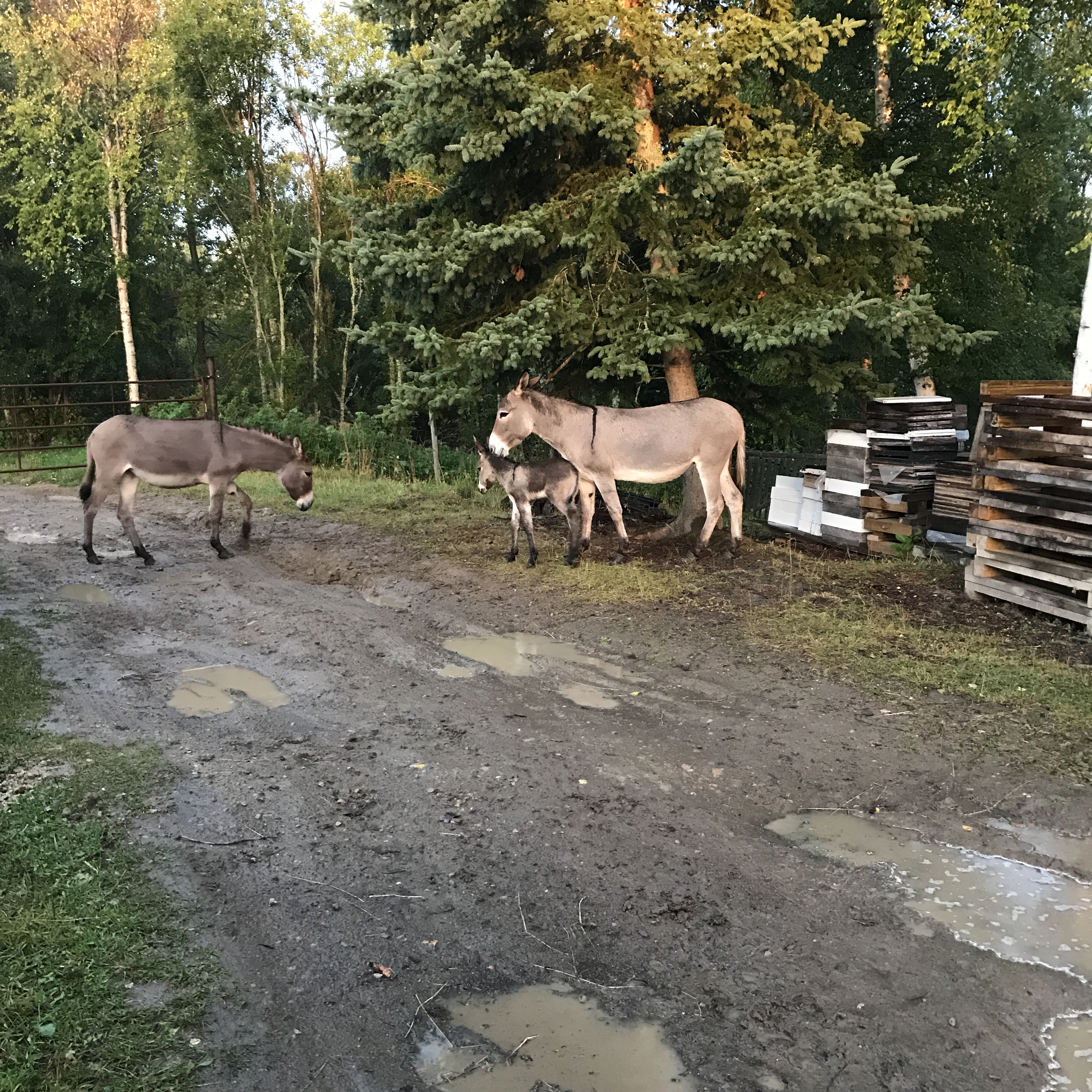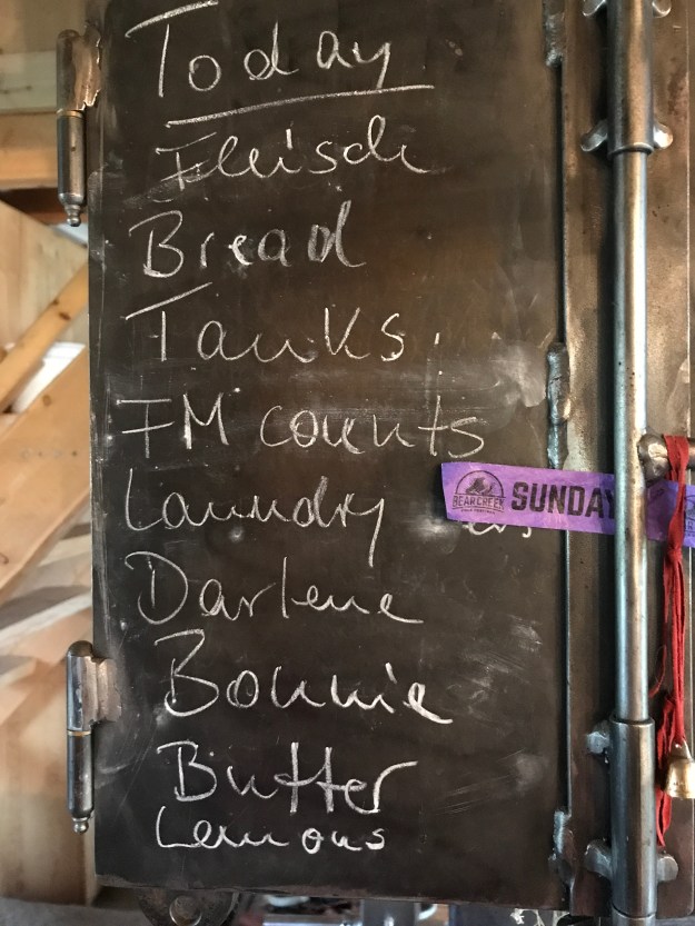 Mutter und Kind wohlauf. Mutter (fast) kooperativ. Und das beste Problem: 10-15 Liter Milch am Tag, und zwar MIT SAHNE! Letztes Jahr, ich hatte das glaube ich erwaehnt, beinhaltete meine Milchquote nur die Benutzung des halben Euters, ich bekam Magermilch und praktisch keine Sahne. Und nur so drei, vier Liter Milch ueberhaupt. Jetzt ist irgendwas anders, warum genau, weiss ich nicht. Jedenfalls schwimmen wir in Milch. Letztes Jahr reichten noch zwei, drei Einkochglaeser mit knapp 1.5 Litern Inhalt fuer das Morgenmelken aus. Inwischen bin ich zu Gallon-Jars, also Glaesern mit 4 Litern Inhalt gewechselt, und davon brauche ich morgens so etwa zweieinhalb, abends nochmal eines. Jeden Tag gibt es frischen Kefir, Sahne, leckerste Vollstmilch in Tee und Kaffee und natuerlich jetzt alle moeglichen anderen Milchprodukte: Joghurt, Quark und Frischkaese, dann sind Feta und Camembert in der Reife, Mozzaballs (na ja, da muss ich noch ueben), und Butter, natuerlich gibt es Butter. Und trotzdem hab ich jede Menge Milch uebrig, so dass auch die Huehner und das Schwein was abbekommen. Der geschaetzte Preis einer Tasse Kaffee mit ordentlich Milch drin sinkt taeglich, ich vermute, angefangen haben wir mit etwa $50 pro Schuss Milch, aber jetzt sind es bestimmt nur noch so $47,90 vielleicht…