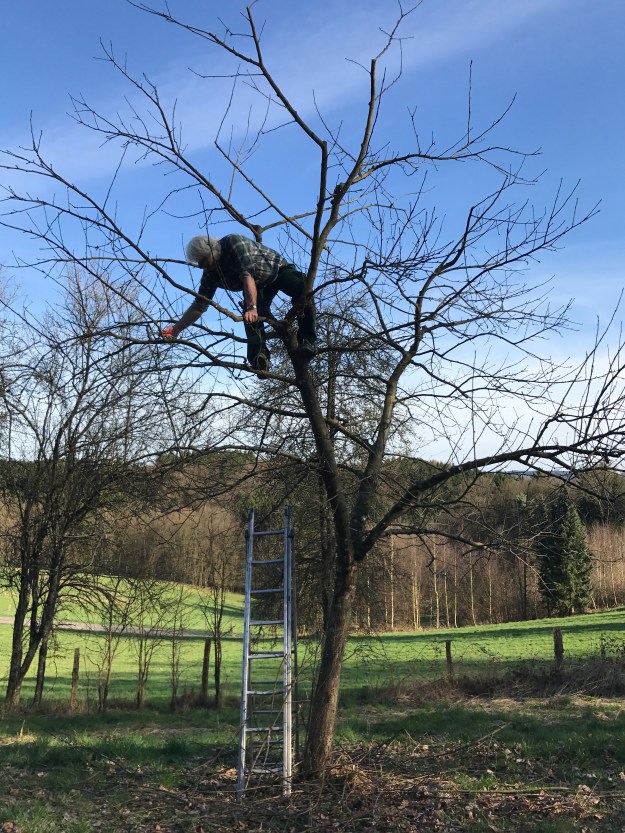 Zu Hause bin ich jetzt in – inzwischen gesetzlich verpflichtender – haeuslicher Isolierung. Das ist nun natuerlich so gar nicht schwierig. Abgeholt wurde ich von Gereon und Freundin Katrin mit zwei Autos und chauffierte mich dann allein nach Hause, mit den beiden im nachfolgenden Auto. So wurde es moeglich, dass Gereon dennoch arbeiten gehen kann, weil er sich in seiner Werkstatt einschliessen und keinen sehen darf. Sogar Einkaeufe fuer uns uebernimmt seine Firma jetzt und stellt ihm alles vor die Werkstatttuer. Kommunikation erfolgt nur per Telefon