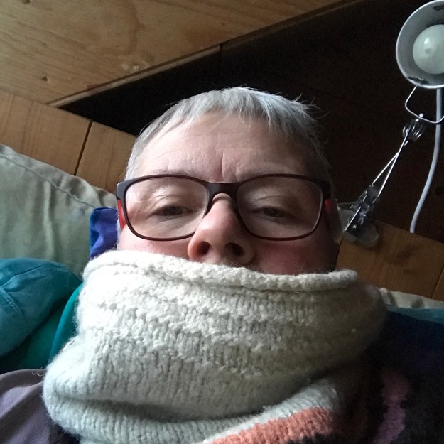 Am 19., also Samstag, guckte ich um 6 Uhr frueh aus dem Fenster und sah Luise an der Raufe fruehstuecken. Ich hatte sie sicherheitshalber weggesperrt, weil mir am Freitag schon was schwante. Als ich gegen 6:30 Uhr wieder aus demselben Fenster guckte, lag Luise neben der Raufe, hinter sich ein blaeuliches Handtuch. Merkwuerdig! Ich verdaechtigte Hugo. Aber dann ging bei mir das Laempchen an (aelter und frueh am Morgen = laaaaangsames Hirn). Ich raste im Bademantel (wenn ich den nicht haette – ich waere verloren) runter und raus, vorbereitet auf ein Desaster, weil sich weder Luise noch das Handtuch bewegten. Als ich aber direkt dabei stand, regte sich das Handtuch und blinzelte mich an.