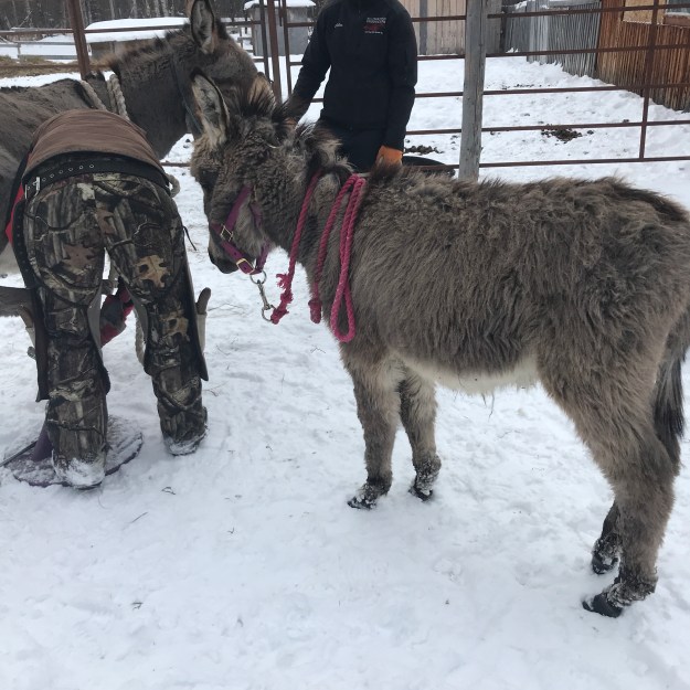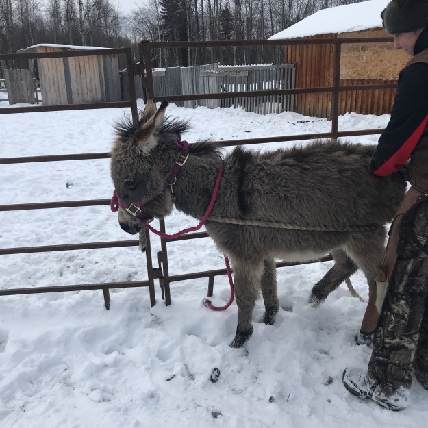 Inzwischen sind bis auf Bruder Hugo alle Hofbewohner wieder zaunlos zusammen. Hugo ist ja noch intakt, und das wird wohl auch noch dauern. Die deutsche Tieraerztin hier aus der Naehe, die ich kontaktierte, riet mir von einer Kastration zum jetzigen Zeitpunkt ab. Die Hoden sind noch nicht unten, und sie sagt, bei Eseln kann das typischerweise deutlich laenger dauern als bei Pferden. Ich war froh, dass jemand bestaetigt, was ich eigentlich auch wusste, naemlich dass Esel nicht einfach merkwuerdige Pferde sind. Also richte ich mich auf massivere Zaeune und ein bisschen Nervenkitzel ein, und Hugo wird sich weiter mit den Lamas abgeben muessen. Die aber gar nicht schlecht fuer ihn sind, haben sie doch ganz klare Grenzen, deren Beachtung sie energisch einfordern. Weswegen Hugo jetzt oefter vorgekautes Gras auf dem Ruecken hat… Und dankbar wirkt, wann immer ich mit dem Halfter komme. Es kann, so scheint er zu denken, nur besser werden.