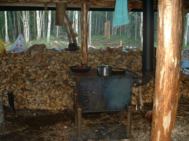 Jetzt warten wir auf das bestellte Fenster, und dann werden sich Gereon und der neu gefundene Schreiner/Zimmermann an das Basteln von Tueren geben. Wir moechten naemlich immer noch keine kanadischen Tuerbeschlaege, und so habe ich den Lieblingsnachbarn in Deutschland einmal mehr um Unterstuetzung gebeten. Und wenn das dann alles geregelt ist, haben wir wieder Platz fuer Besuch! Ach, und einen Ofen habe ich auch schon bekommen, ungefaehr so: