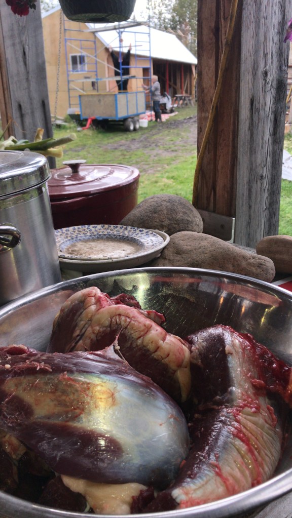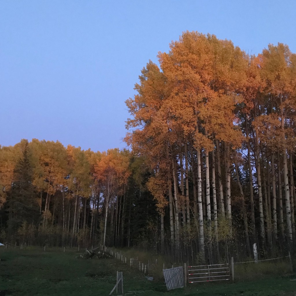 Na, und dann gab es mehr Herbstdinge. Winteressen vorbereiten, der Hackepeter zieht um in die Truhe. Es wird eingekocht, heute abend noch schnell, liebe Frau Claudi, Zwetschgen/Pflaumen mit Birnen, wie es das bei meiner Oma gab. Vorher jede Menge Tomatensosse, und ohne Bild, weil auch optisch sehr tomatig und aehnlich, Salsa und Relish. Halloween ist auf dem Anmarsch, und direkt danach Weihnachten, jedenfalls bei Costco. Die Baeume kleiden sich golden, die Wolken machen manchmal Drama (mit ungeheurem Regen, wie ich ihn erst einmal, vor Jahrzehnten in Deutschland, beim Autofahren erlebt habe), die Eberesche schmeisst die Blaetter ab, noch eine Henne taucht mit 7 Kueken auf, obwohl es regelmaessig nachts friert. Bis jetzt hat sie noch keines verloren! Leider will irgendwer mal wieder nicht alles so hochladen wie ich moechte. Die Weihnachtsbaeume am 15. September oder so muesst ihr euch also denken. Bekloppt sind sie schon, die Kanader!