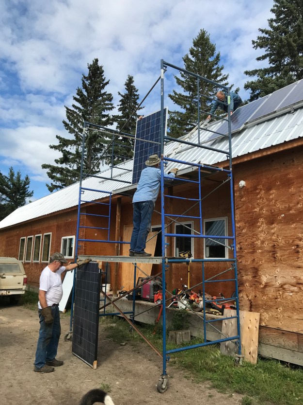 Nachdem naemlich mit Hilfe der freundlichen „Nachbarn“ die zusaetzlichen Panels auf dem Dach montiert waren und dann der Herr Hoe. ratzi-fatzi einen Leitung zum Haus (ueber die ueberaus provisorische Ausfuehrung schweigen wir mal wieder) gelegt hatte, gab es ploetzlich ungeahnte Mengen Strom – mir wurde am ersten Tag fast bange. Dann aber hatten sich die Batterien, der Inverter, die Anzeige im Haus und ueberhaupt alle Elemente an die veraenderte Lage gewoehnt, und ich wollte schon morgens den Staubsauger anwerfen, einfach nur so, weil ich naemlich gekonnt haette! Wenn sonst so gegen 11 Uhr die Anzeige auf Ladung umschaltete, tat sie das in den ersten Tagen (wir erinnern uns: VOR der Herbst-Tag- und Nachtgleiche) bereits VOR 8 Uhr morgens. Das hat es noch nie gegeben. Inzwischen sind die Tage schon wieder erheblich kuerzer, aber dennoch kommt bei Sonnenschein total viel Strom bei uns an, und es macht richtig Spass. Der Generator, dieses laermige Ding, ist auch umgezogen, so dass mein Haus gar nicht mehr vibrieren muss. Rundum wunderbar! Und deswegen kann ich ueber die kleinen nach wie vor existierenden Unannehmlichkeiten (Mehlmahlen im Honeyhouse, immer noch keine „ordentlichen“ Steckdosen) problemlos hinwegsehen.
