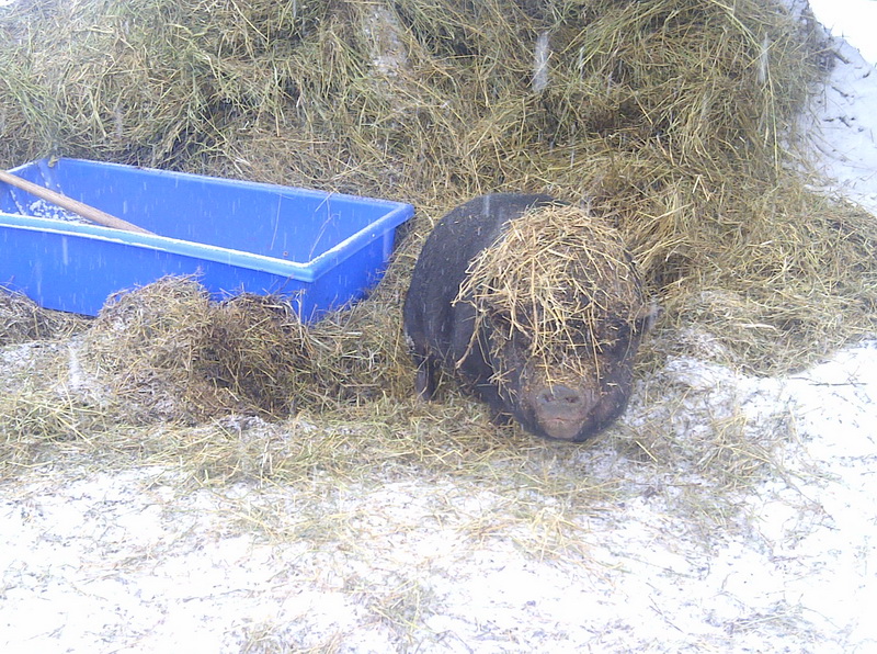 Nach einer recht langen Phase der Bequemlichkeit und Weicheiigkeit (vornehmlich auf dem Sofa) besinnt Emmi sich auf das, was sie persoenlich am Herbst/Winter liebt und wofuer sie gern Schnee im Pelz in Kauf nimmt: Der von ihr bewachte Schatz ist ein Ziegenkopf. Es gab den unvermeidlichen Schlachttag, diesmal mit einem „richtigen“ Metzger.