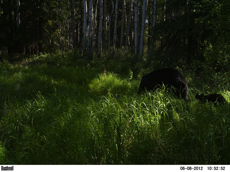 Vor lauter Norwegen und jetzt Honigarbeit bin ich nie dazu gekommen, euch noch ein paar der Bildchen zu zeigen, die die beiden Trail Cameras so hergeben. Bis auf kleine Woelfe und kleine Wapitis haben wir nun alles auch in jung gesehen. Es gibt auch noch eine Elchkuh mit nur einem Kalb. Und dann die Herrschaften, die einen eigenen Artikel bekommen.
